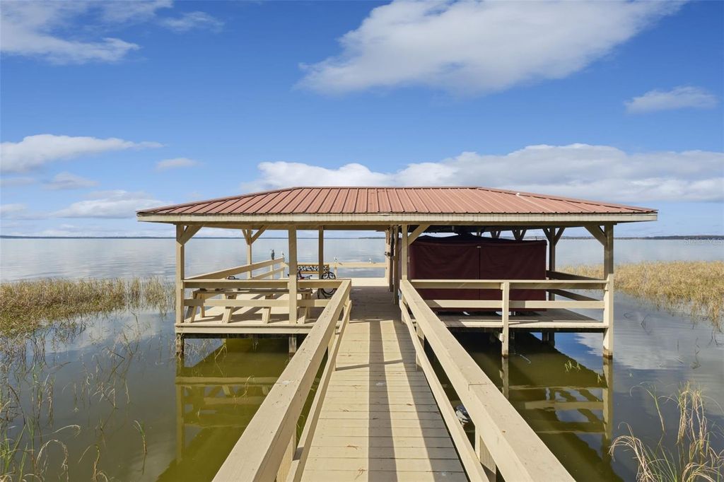 Under contract-accepting backup offers. Welcome to The Peninsula"”one of Central Florida's most coveted addresses on the Harris Chain of Lakes, offering unmatched serenity, postcard-worthy sunsets, and a true waterfront lifestyle just minutes from Orlando. This beautifully appointed 3-bedroom, 3-bathroom split floor plan home combines luxury, comfort, and resort-style living in a setting that feels worlds away yet remains wonderfully convenient. Step inside and immediately take in the sweeping west-facing lake views visible from nearly every main living area. The resort-inspired primary suite is a private sanctuary featuring French doors that open directly onto the pool deck, dramatic water views, dual custom walk-in closets, and a completely custom-remodeled spa-like bath with a deep garden tub and doorless walk-in shower"”your own tranquil retreat after a day on the lake. Designed for both everyday living and unforgettable entertaining, this home offers multiple spacious living areas anchored by panoramic lakefront scenery, plus an office/den/bonus room ideal for working from home or creating a quiet reading hideaway. The chef's kitchen boasts a gas range with upgraded exterior venting, abundant prep and storage space, a center island with built-in storage, walk-in pantry, and breakfast bar"”perfect for cooking, hosting, or simply enjoying morning coffee with waterfront views. The living room features a stylish wet bar and flows seamlessly out to the expansive lanai and refinished pool deck, where a Pebble-Tec heated pool and spa invite you to swim, relax, or entertain beneath the evening sky. With 156 feet of lake frontage, a new dock, covered boathouse, and boat lift, this property is a dream for fishermen, boaters, and anyone who loves life on the water. Upgrades include a 2019 roof, 2023 whole-home generator, new gas water heater, and a freshly re-sealed paver driveway. Tray ceilings, large windows with plantation shutters, and nearly an acre of land add to the spacious, elegant feel of this exceptional home. The community itself feels exclusive, featuring its own private road and a brand-new gated entrance scheduled to be installed this February"”enhancing privacy, security, and curb appeal. Located in Tavares"”America's Seaplane City"”this is lakefront living at its finest, where every day can feel like a vacation. Whether you're watching unforgettable sunsets from your pool, hosting friends for waterfront evenings, or heading out on the Harris Chain for a day of adventure, this home delivers a lifestyle that is truly unmatched.