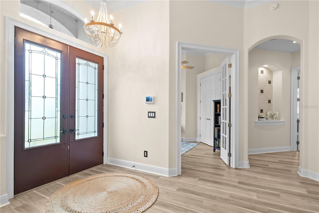 One or more photo(s) has been virtually staged. Acreage, privacy, and resort-style living come together in this beautifully upgraded 4-bedroom, 3.5-bath home in Groveland, set on 5.05 serene acres. Thoughtfully enhanced with major upgrades, this property offers the perfect blend of modern comfort and true Florida indoor-outdoor living, ideal for entertaining, multigenerational living, or those seeking space and tranquility. The home has been extensively improved for comfort, efficiency, and peace of mind, featuring a new roof and hurricane-impact windows, a whole-home generator, new well pump, updated irrigation system, and a new sump pump. An electric pool heater and new pool pump allow for year-round enjoyment of the private saltwater pool. Inside, you'll find modern LVP flooring, two fully renovated bathrooms, updated countertops, reverse osmosis drinking water, and a kitchen peninsula with built-in charging stations. Two A/C units, both only three years old, provide efficient and reliable climate control. With 3,368 square feet of living space, this home is designed for both entertaining and everyday enjoyment. The open kitchen and expansive living areas flow seamlessly to the outdoors, while a spacious loft offers flexible use as a game room, media room, or guest retreat. The private saltwater pool anchors a tranquil outdoor oasis, complemented by a covered patio and expansive deck perfect for lounging, grilling, and enjoying sunset views. Set within a Dark Sky Community, the property offers rare, unspoiled night skies, creating a true retreat-like atmosphere. The 5.05-acre lot provides exceptional privacy, scenic wildlife views, and ample room to expand, garden, or simply enjoy the quiet. The property also offers access to the highly sought-after Clermont Chain of Lakes via the Palatlakaha River, perfect for boating, kayaking, and weekend adventures. Conveniently located just minutes from Downtown Clermont waterfront parks, dining, breweries, and local events, this home offers the perfect balance of seclusion and accessibility.