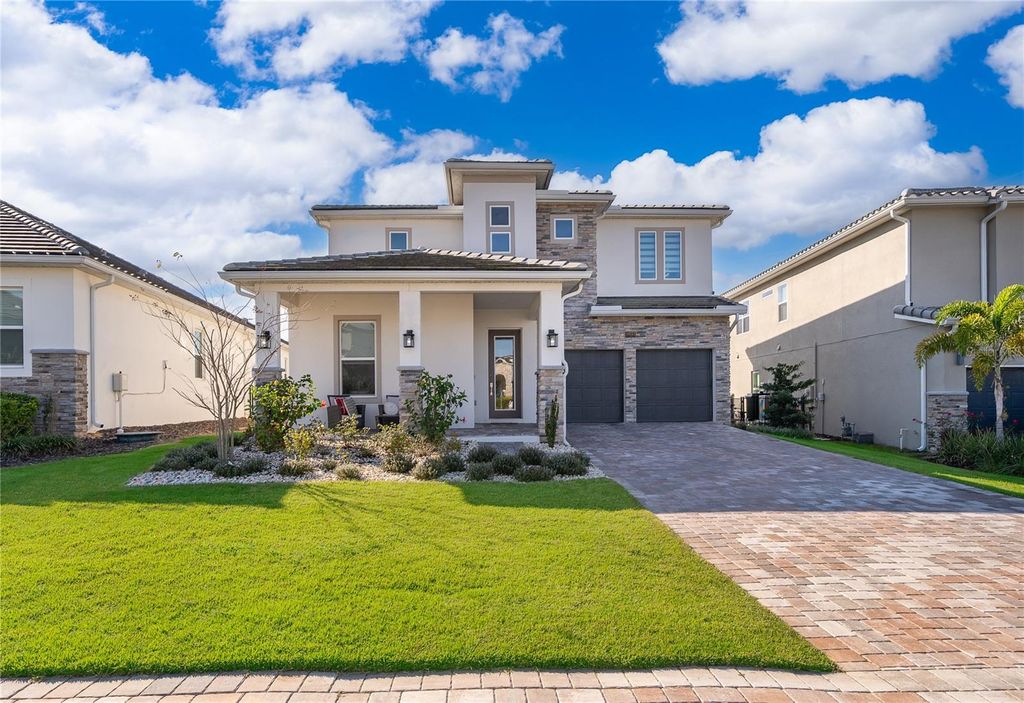 Experience luxury living at its finest at 16033 Volterra Point, a stunning 4-bedroom, 3-bathroom home in the exclusive Bella Collina community. This residence boasts an open floor plan with seamless flow between living spaces, upgraded countertops, a custom primary bedroom closet, automated roller screens in the lanai, and tasteful window treatments throughout. High-end laminate flooring throughout the home adds elegance and warmth, with no carpets for a clean, modern aesthetic. The fenced backyard and Tesla charger provide convenience and security, while enjoying sunset views create a serene backdrop for everyday living. Residents enjoy full access to The Club at Bella Collina, featuring a Sir Nick Faldo championship golf course, tennis courts, resort-style pool and spa, state-of-the-art fitness center, fine dining, social events, spa and salon services, scenic walking and biking trails, and a Tuscan-inspired clubhouse designed for relaxation and entertaining. Combining sophisticated design, modern amenities, and an unparalleled lifestyle, 16033 Volterra Point offers the perfect blend of comfort, elegance, and resort-style living in Central Florida.