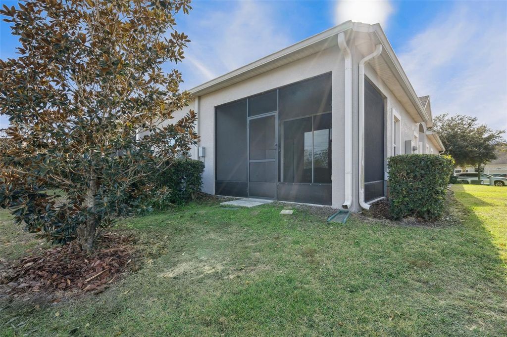 One or more photo(s) has been virtually staged. Welcome to Heritage Hills the sought after 55 plus community in beautiful Clermont! This popular St. Marten villa offers 2 bedrooms with 2 full baths, a one car garage and is over 1500 sq. ft of living space! The end unit model with lots of natural light and no rear neighbors is a plus! You will find all tile throughout the living area with NEW CARPET in the 2 bedrooms. The living room and dining room feature NEW easy lift shades on the windows! The primary bedroom which is located off the living room has a very spacious CUSTOM closet that you will love! The primary bath has a walk in shower and a dual sink granite countertop. The second bedroom is at the front of the property which allows for privacy for guests. The flex room can be used as an office, craft room or additional sitting room/den. The kitchen will surprise you with all the cabinets, lots of granite countertops, a breakfast bar with pendant lights, NEWER range and a pantry! Heritage Hills amenities include a heated pool and spa, pickle ball, tennis, basketball, bocce ball, shuffleboard, clubhouse with planned activities, lots of clubs to join, fitness center, art and crafts room, billiard room, card room and ballroom for holding events. Spectrum high speed internet and cable is included in the HOA fees! Exterior is painted every 5-6 years! The roof is replaced at year 15 and the reclaimed irrigation water is included in the HOA fee. There is a 5 mile walking trail around the community. Call today for a private showing!