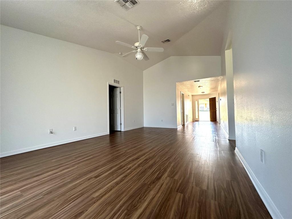 One or more Photo(s) have been digitally staged...GREAT HOME FOR FIRST TIME HOME BUYER....MOVE-IN CONDITION.....CALL TO SEE TODAY 3 BEDROOM, 2 BATH HOME with large 2 CAR GARAGE sits on a LARGE CORNER LOT... Welcome to this spacious and elegantly designed home conveniently located in Central Florida; offering a quality lifestyle with plenty of space. This beautiful home is nestled in the quiet Lakeview Estates of only 23 homes... As you enter the home, you are greeted by laminate wood floors & vaulted ceilings throughout. The Split Floor Plan Design features the Great Room and is seen from spacious Foyer. Home Design provides natural lighting throughout. Home includes large Great Room with French Doors, Kitchen with Breakfast Nook, large Master Suite with 2 Walk-in Closets, Wood Vanity with Double Sinks, Walk-in Shower, Guest Bathroom with Shower/Tub & Wood Vanity, 2 Bedrooms, Laundry Room with Washer & Dryer, Ceiling Fan/Lights throughout, Tile Floors in Wet Areas. Enjoy Florida Living on beautiful lakes, nature walks, conveniently located just minutes from you. Airports, Beaches, City of Orlando, Dining, Hospitals, Shopping and Theme Parks are easily accessible on new highways from home. Don't miss this opportunity to make this unique home your own. Please call today to schedule your private viewing, so You may discover and experience all the distinctive features and quality this home provides.