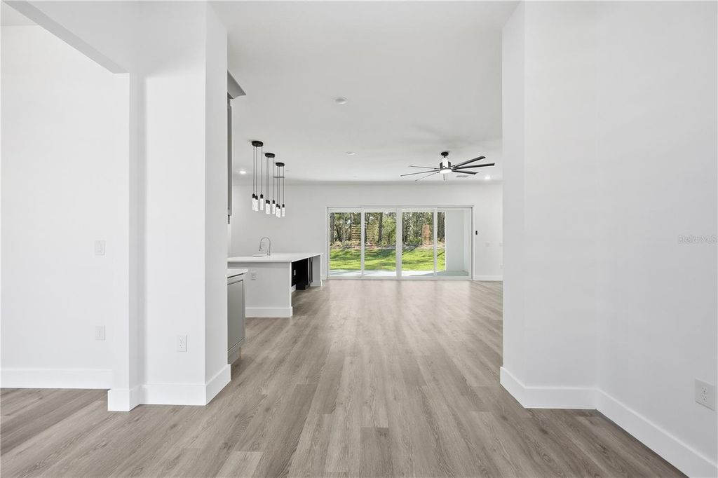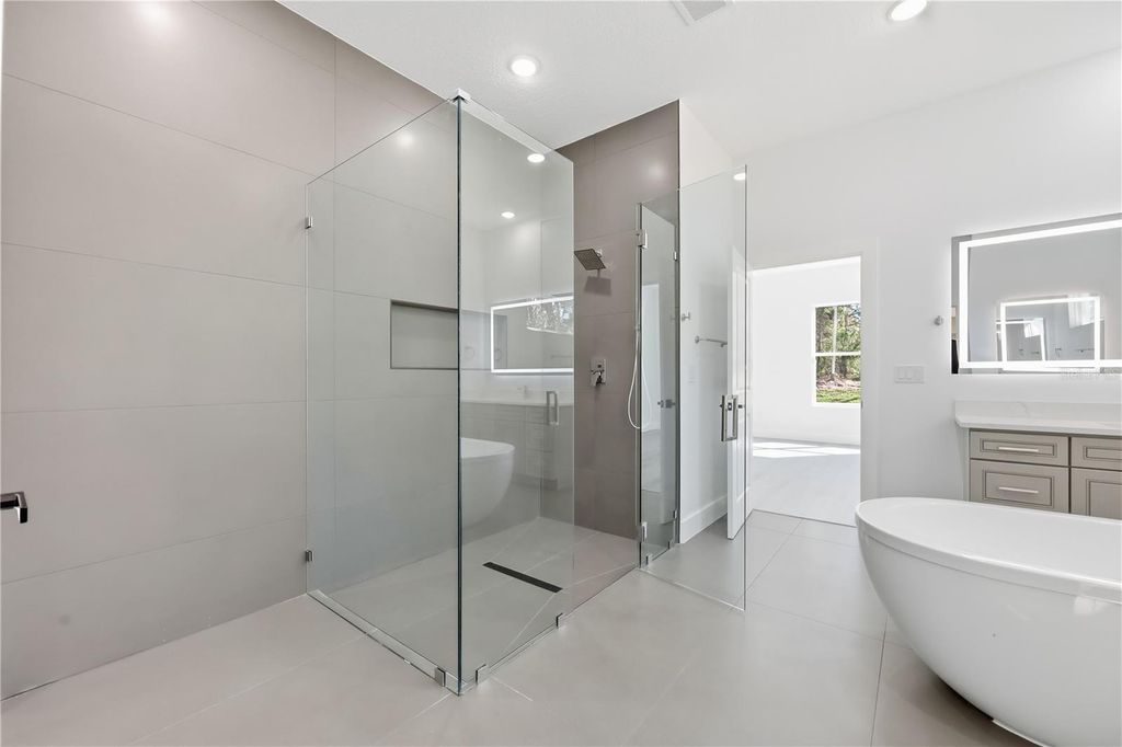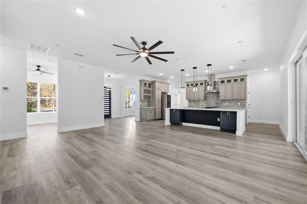 One or more photo(s) has been virtually staged. This stunning new construction 4-bedroom, 3-bath home features a thoughtfully designed open-concept layout that blends comfort with modern elegance. The spacious living area showcases an electric fireplace, creating a warm and inviting atmosphere ideal for both entertaining and everyday living. The luxurious primary suite offers a spa-inspired bathroom with a walk-in glass-enclosed shower, a freestanding soaking tub, and refined finishes. Designed for privacy and flexibility, second bedroom to the right with a full bathroom and tub. and a bonus room/den. To the left, two additional bedrooms share another full bathroom"”perfect for guests, there is a bonus space you could use for games, office. A beautiful formal dining area with a large picture window fills the home with natural light and showcases views of the inviting front yard with mature, tall trees. The modern kitchen features quartz countertops, stylish cabinetry, and flows seamlessly into the main living spaces. Additional highlights include an indoor laundry room with an exterior door leading to a detached two-car garage, connected by a covered walkway to keep you protected from the rain. Located in Wildwood, Florida, a popular choice for people from all walks of life, this home is conveniently close to the World Equestrian Center and The Villages, known for upscale dining, live music, and vibrant social gatherings. Enjoy easy access to major highways for convenient travel to Orlando and Tampa.