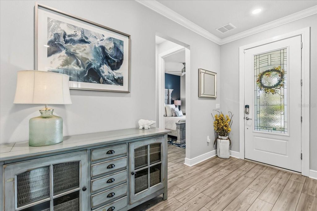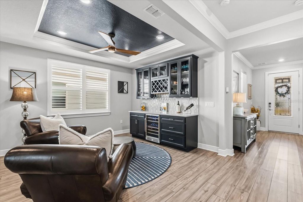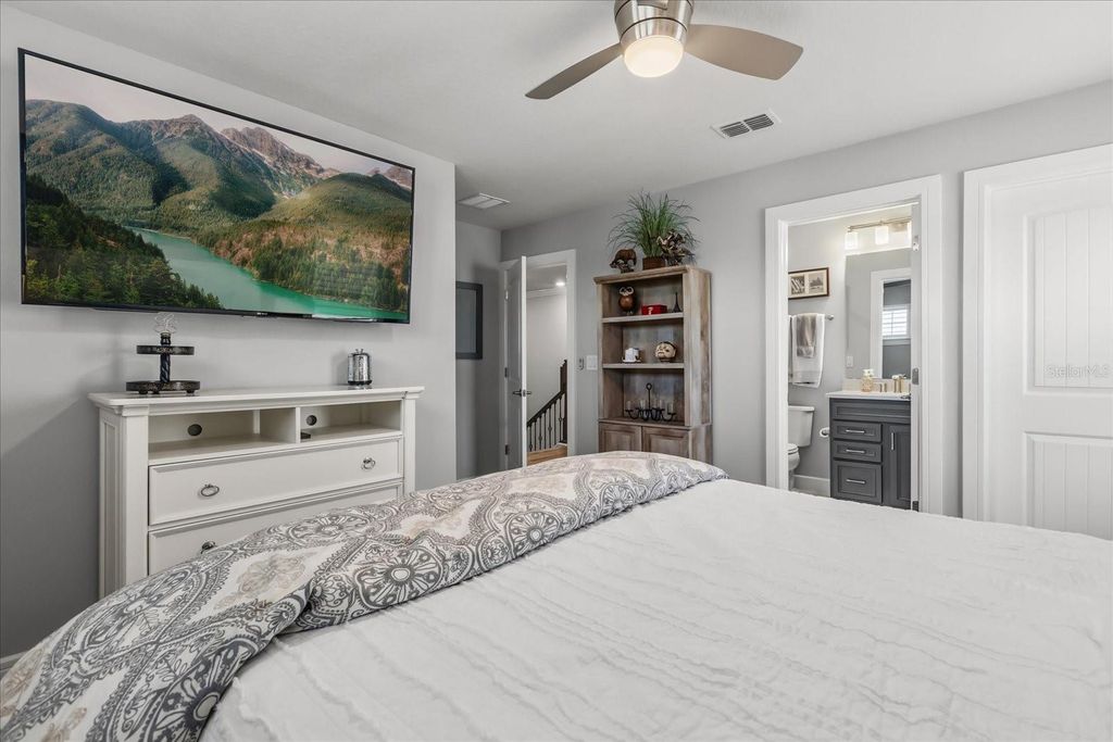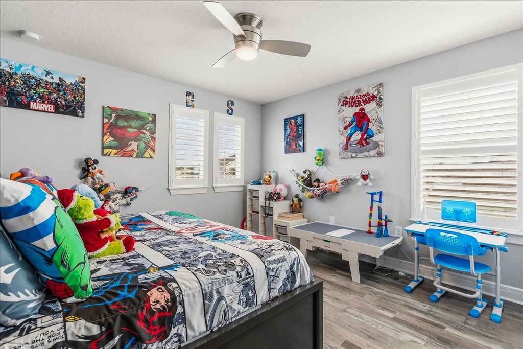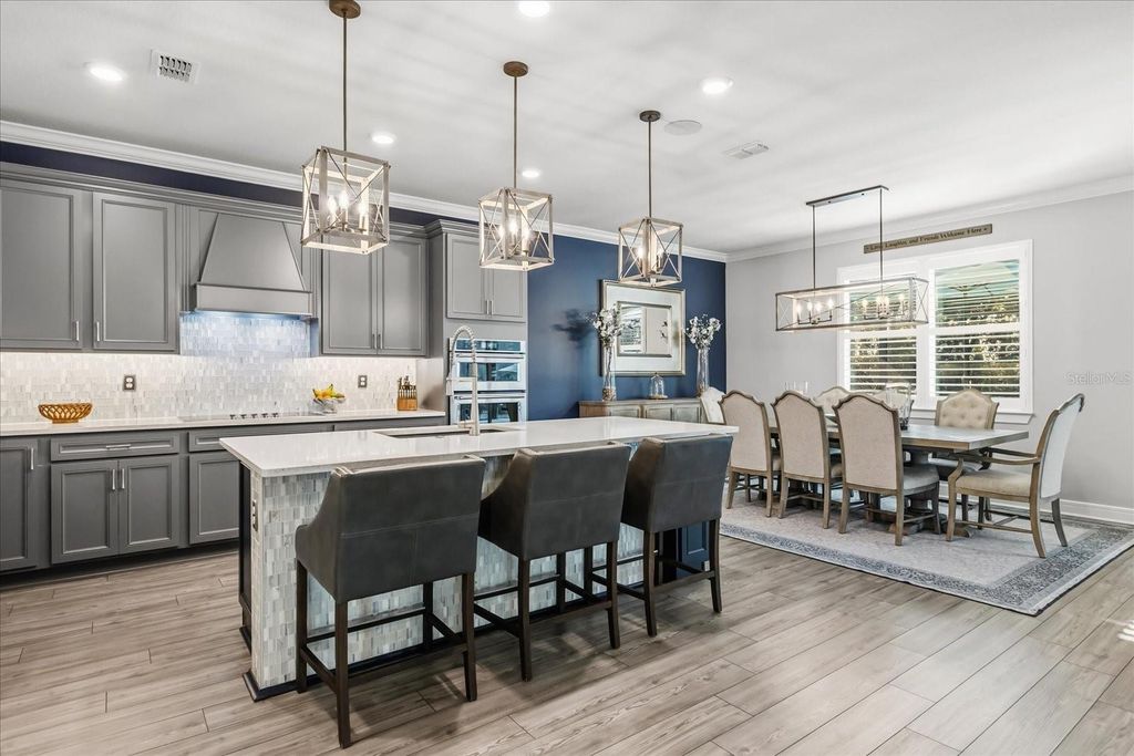 Luxury, lifestyle, and location converge in this stunning 5-bedroom, 3.5-bath residence located in the gated community of Lakeview Preserve in Winter Garden. Thoughtfully upgraded and meticulously maintained, this home offers high-end finishes, smart features, and exceptional indoor-outdoor living. The chef's kitchen is the heart of the home, featuring quartz countertops, premium KitchenAid stainless steel appliances (stove, oven, microwave, and dishwasher), custom pantry storage, and seamless flow into the living areas. Enjoy luxury vinyl plank flooring throughout, crown molding, custom plantation shutters, and elegant shiplap accent walls in the entry, living room, loft, and bonus room. The living space is anchored by an electric fireplace with a shiplap feature wall, mantle, and floating shelves, complemented by a dry bar with wine fridge"”perfect for entertaining. Designed for comfort and functionality, the home includes custom closets throughout (primary suite, second primary suite, two additional bedrooms, and pantry), central vacuum system, in-home surround sound (including patio and pool area), second-floor laundry with drop sink and cabinetry, and a painted and sealed garage floor with an electric vehicle charger. The interior was freshly painted in summer 2025. Step outside to your private backyard oasis featuring a heated saltwater pool, 8-person spa, summer kitchen, fenced yard, stone landscaping, concrete curbing, and landscape lighting in both the front and back"”ideal for year-round enjoyment. The home also features full solar panels that will be paid off at closing, offering energy efficiency and long-term savings. Lakeview Preserve offers resort-style amenities including a clubhouse, community pool, park, and playground. Prime Winter Garden location close to shopping, dining, attractions, and major highways makes this an exceptional opportunity to own a truly turnkey luxury home.