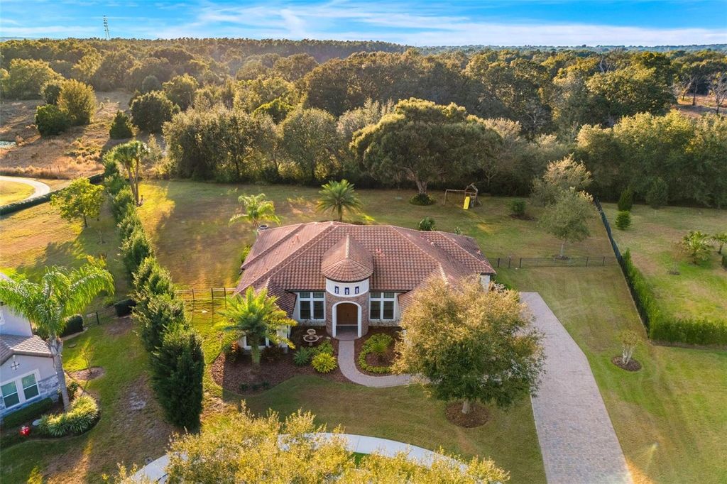 Welcome to 25870 Crossings Bluff Lane"” Nestled on a rare 1 Acre homesite with a cul-de-sac, this exceptional luxury residence in the sought-after community of Heathrow Country Estates awaits You. This beautifully designed 4-bedroom, 4.5-bath pool home offers the perfect blend of elegance, comfort, and modern Florida living. Step inside to a bright, open floor plan with high ceilings, abundant natural light, and refined finishes throughout. The gourmet kitchen is the heart of the home, featuring premium cabinetry, a spacious island, quartz countertops, and stainless-steel appliances"”ideal for both everyday living and entertaining. The expansive primary suite offers a peaceful retreat with a spa-inspired bathroom, dual vanities, a soaking tub, and a generous walk-in closet. Each additional bedroom includes its own ensuite bath, providing comfort and privacy for family and guests. Outside, enjoy the best of Florida living in your private oasis. The sparkling pool, large patio, and outdoor living area with a state of the line outdoor kitchen, create the perfect space for relaxing, hosting, and enjoying warm evenings. Situated on a serene street, this fully fenced-in home offers both tranquility and convenience. RedTail is home to a stunning 18-hole championship golf course crafted by renowned architect Dave Harman. The community offers an impressive array of amenities, including a beautifully appointed clubhouse with an exceptional restaurant, spacious veranda, and the lively Hawk's Nest Bar. Residents and members also enjoy a state-of-the-art fitness center, tennis courts, and a resort-style pool. Perfectly situated, RedTail provides convenient access to everyday essentials as well as Central Florida's top destinations. You're just minutes from charming Mount Dora, world-famous Disney resorts and theme parks, and the gorgeous beaches along both coasts.
