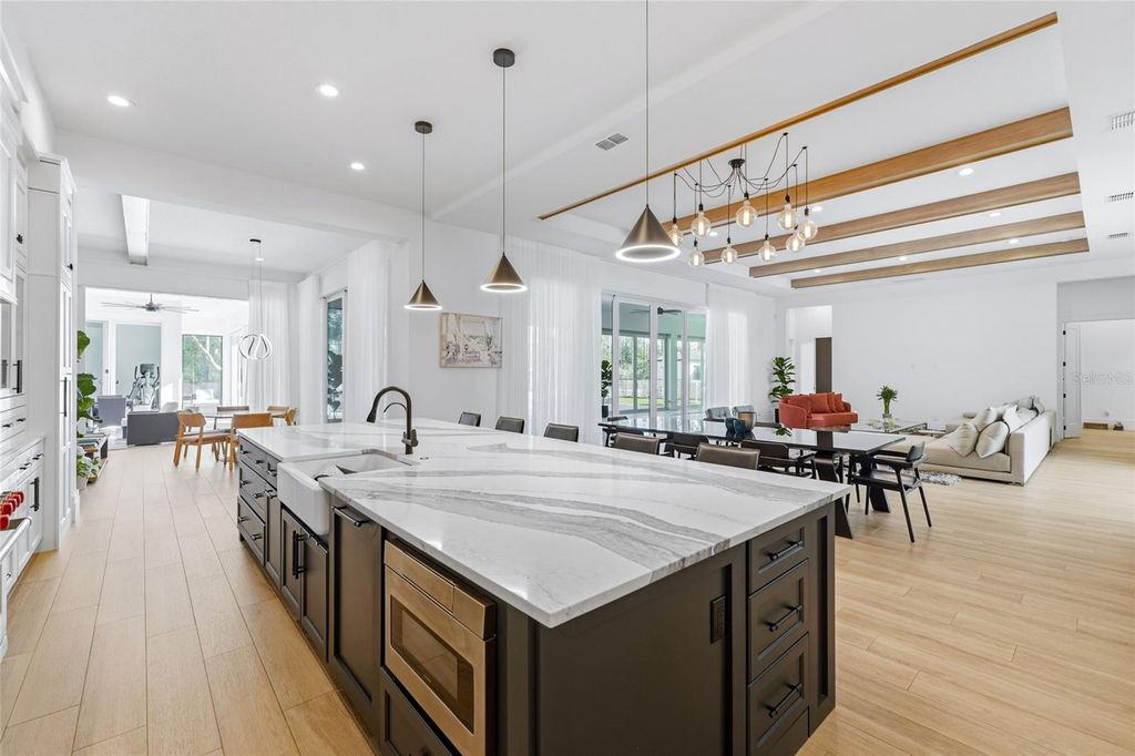 Apresenting an extraordinary estate within the exclusive gated community of Bella Collina, one of Central Florida's most prestigious and sought-after addresses. Set on an impressive 5,000+ square meter (over 1.2-acre) homesite, this fully single-story residence offers elegance, privacy, and a true resort-style lifestyle. The home features 5 spacious suites, each with its own walk-in closet, 5 full bathrooms, and 1 half bath. One of the suites has been thoughtfully designed and customized as a private fitness studio, providing convenience and exclusivity for daily wellness and training within the comfort of your own home. For enhanced security and peace of mind, the residence is equipped with hurricane-impact doors, offering superior protection and durability. The primary suite is a serene retreat, showcasing a spa-inspired bathroom with a soaking tub, dual showers, dual vanities, an expansive walk-in closet, and refined finishes throughout. Wood-look ceramic flooring adds warmth and sophistication to the space. The main living areas impress with an open-concept design that flows effortlessly. The gourmet kitchen is both spacious and refined, featuring custom wood cabinetry, stainless steel appliances, quartz countertops, and a grand center island that seamlessly integrates with the living and dining areas "” ideal for entertaining with style and ease. Large sliding glass doors invite abundant natural light and open to a spectacular outdoor living space. Designed for unforgettable gatherings and everyday enjoyment, the exterior features a fully equipped summer kitchen, playground area, basketball court, and a private heated pool with an integrated spa "” your own personal oasis. Living in Bella Collina means embracing an unparalleled lifestyle. Residents enjoy access to The Club at Bella Collina, offering a championship golf course, tennis and pickleball courts, a resort-style pool complex, state-of-the-art fitness center, luxury spa, fine dining, and a vibrant social calendar. The location is simply exceptional. Just minutes from the charming downtown of Winter Garden "” known for its boutiques, cafés, acclaimed restaurants, and the popular Farmers Market "” the property also provides convenient access to the Florida Turnpike and State Road 429, ensuring effortless travel to Orlando, world-famous theme parks, and major airports. Additionally, it is near the renowned Montverde Academy, recognized nationally for its academic excellence. This is more than a home "” it is an invitation to experience exclusivity, sophistication, and an elevated quality of life. Don't miss the opportunity to make this extraordinary address your new residence.