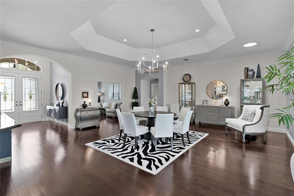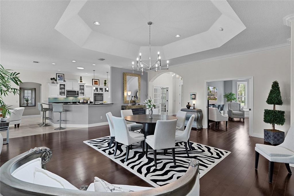Golf-Front Luxury with Panoramic Views in the Village of Fernandina Welcome to the highly sought-after Village of Fernandina, an intimate enclave of just 67 homes surrounded by some of the finest championship golf in The Villages. This thoughtfully designed open floor plan provide both everyday comfort and effortless entertaining. The expansive great room opens directly to an oversized lanai and screened enclosure, showcasing sweeping water and fairway views of Bonifay Championship Golf Course. Enjoy breathtaking, ever-changing sunset views while relaxing with your morning coffee or hosting guests in the evening. The chef's kitchen is a true centerpiece, featuring premium finishes, enhanced appliances, and a layout designed for gathering and connection.