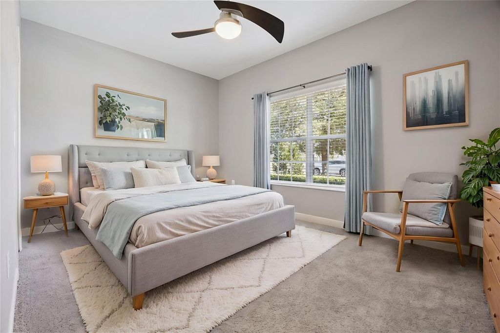 One or more photo(s) has been virtually staged. Sought after Heritage Hills is a vibrant 55 plus community located in beautiful Clermont! This popular St Marten villa has 2 bedrooms with 2 bathrooms plus a flex room and a 1 car garage. This end unit allows for lots of natural light in the villa and there is an extended screened lanai for enjoying the Florida outdoor weather! This open floor plan is perfect for entertaining! In the kitchen you will notice all the cabinet space, granite counter tops, breakfast bar with pendant lighting plus a pantry! All tile throughout the living area with carpet in the 2nd bedroom and laminate in the primary bedroom. The primary suite includes an oversized walk in closet, dual sink granite counter tops and a walk in shower. The flex room can be used as an office, additional sitting room, craft room, etc. and has a built in desk area! The secondary bedroom is private from the rest of the main living area and makes a perfect guest room. Upgraded ceiling fans and light fixtures! NEW GE large capacity washer and dryer also stay! All window treatments stay and the sliding door in the family room has sliding panels for easy opening and closing! Heritage Hills amenities include a heated pool and spa, pickle ball, tennis, basketball, bocce ball, shuffleboard, clubhouse with planned activities, fitness center, art and crafts room, billiard room, golf simulator, card room and ballroom for holding events. Exterior is painted every 5-6 years! Spectrum high speed internet and cable is included in the HOA fee. The roof is replaced at year 15 and the reclaimed irrigation water, is included in the HOA fee. There is a 5 mile walking trail around the community. Call today for a private showing!