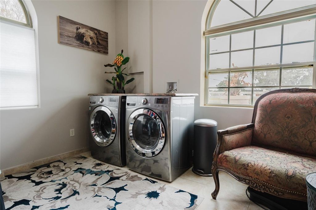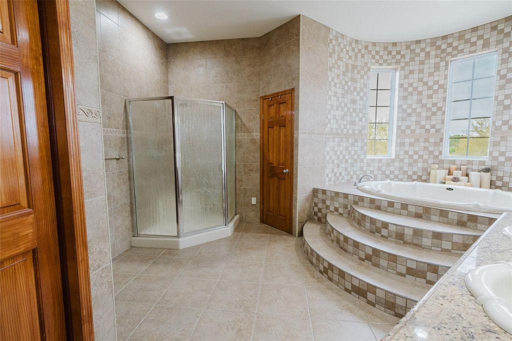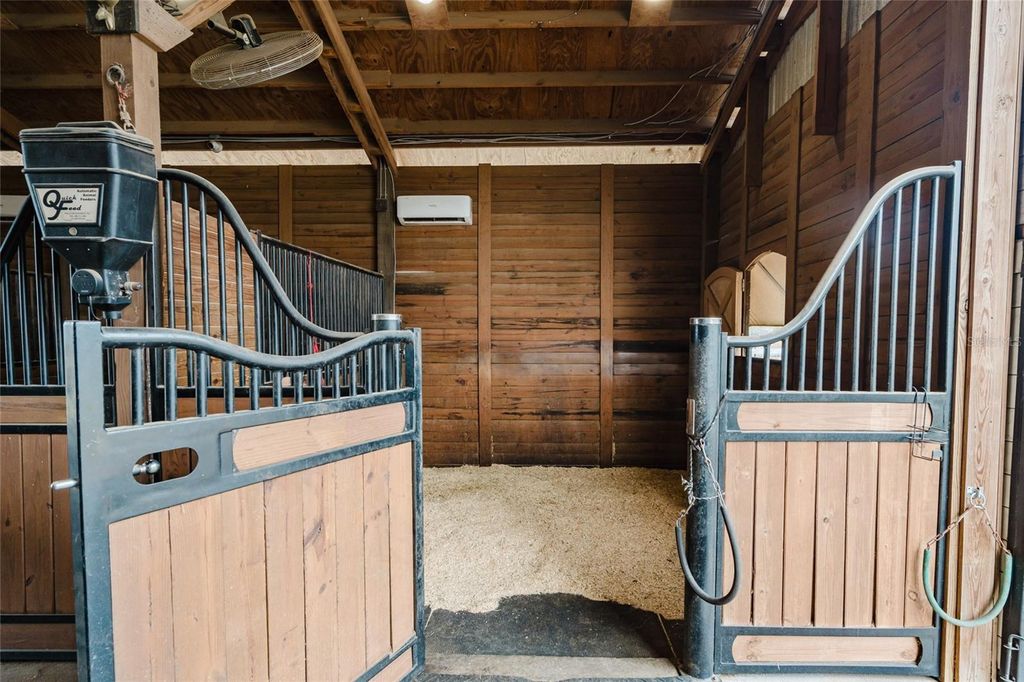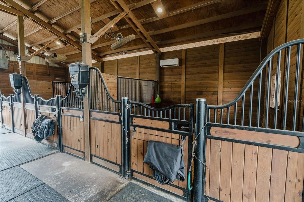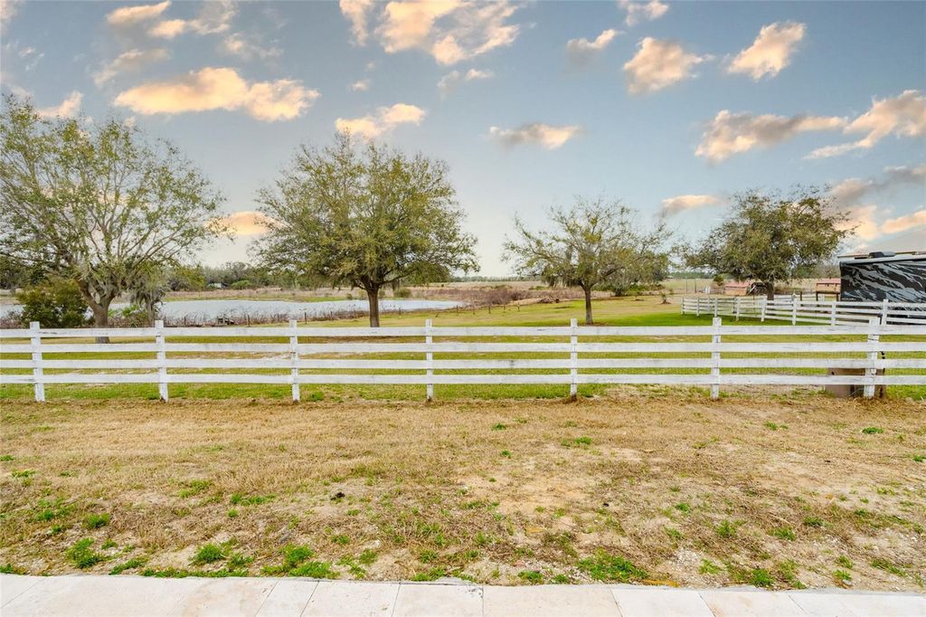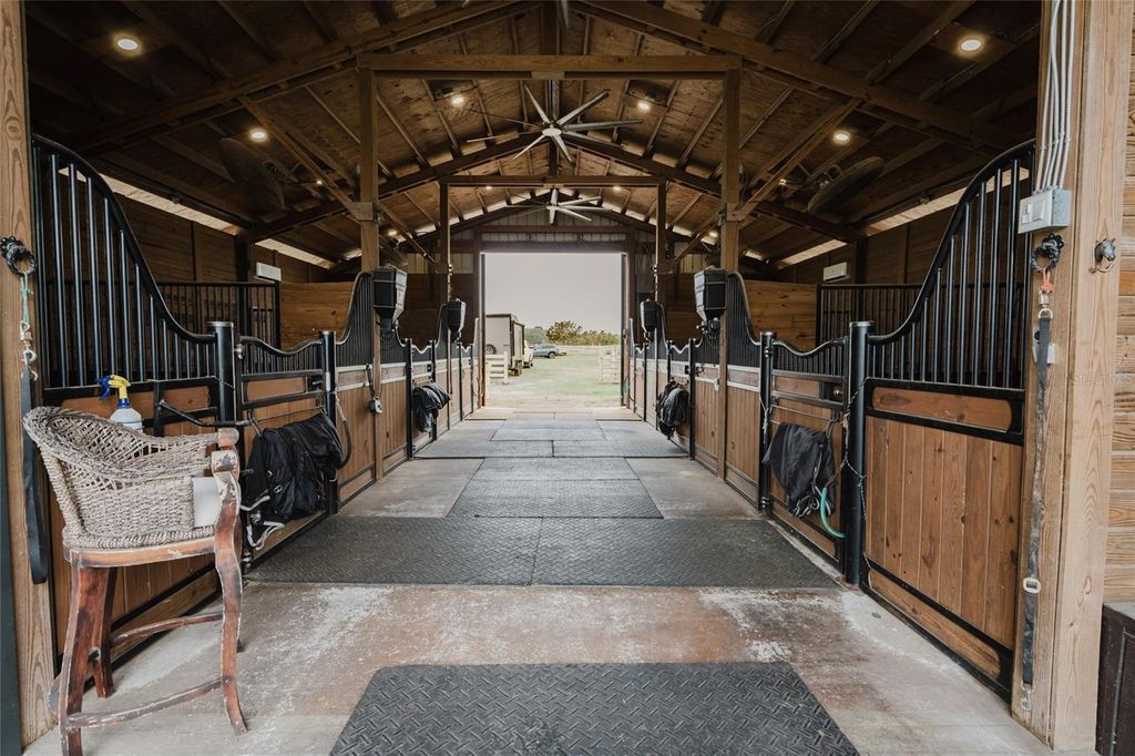 Set on five beautifully maintained acres in Groveland, this exceptional equestrian facility and private residence offers the perfect blend of luxury living and thoughtfully designed horse amenities. Ideally located just 45 minutes from Ocala and directly across from the private Grass Roots Airport, the property offers convenient access to hangars for rent or purchase and available runway usage. The residence features four bedrooms and five full bathrooms, designed to capture sweeping views of the surrounding property. The expansive primary suite includes a wraparound balcony with incredible 180° views across the pastures and beyond, creating a peaceful private retreat. Each upstairs bedroom features its own en suite bathroom, while the downstairs suite offers a walk out covered balcony overlooking the pasture and pond, perfect for guests or multigenerational living. The wide open kitchen serves as the heart of the home and is designed for both everyday living and entertaining, featuring granite countertops, a 36" Kenmore gas range with commercial grade hood, a professional size Kenmore refrigerator/freezer, and a large pantry. The residence also offers two laundry areas, including a full laundry room with built in shelving and hanging space, along with a separate laundry area ideal for handling horse related laundry. Modern comfort continues throughout the home with surround sound and recently updated HVAC systems. Outdoor living is equally impressive. The backyard features a pebble tech pool with sun shelf, travertine decking, and a sunken spa beneath the covered lanai, complemented by a full summer kitchen with bar seating and a built in cocktail table gathering area. From the pool deck, enjoy tranquil views of the pastures, barn, and pond, creating the perfect setting for relaxing or entertaining. The main barn and equestrian amenities are thoughtfully designed for both horse comfort and daily functionality. The barn includes automatic feeders, automatic waterers, and a fly spray system, along with five stalls equipped with air conditioning. Large ceiling fans in the center aisle and directional fans in the stall corners provide excellent airflow. The barn also features a climate controlled tack room, a dedicated grooming stall, and oversized 12 foot barn doors on both ends, allowing trucks and trailers to easily drive through. In addition to the main barn, the property features three additional barns providing six more stalls, along with a large climate controlled storage room ideal for storing hay, grain, or equipment. The property itself is fully fenced with no climb fencing and gated for security, with additional cross fenced four board fencing. Convenient walk through openings are placed at each gate so you can easily move throughout the property without needing to open horse gates. A comprehensive security camera system surrounds the property from the front entrance to the back pasture, allowing you to monitor the property remotely from anywhere. This unique offering combines a luxury residence, a fully equipped equestrian facility, and exceptional privacy, all within convenient reach of Ocala's world renowned horse venues, making it an outstanding opportunity for riders, trainers, and horse enthusiasts seeking both lifestyle and functionality.