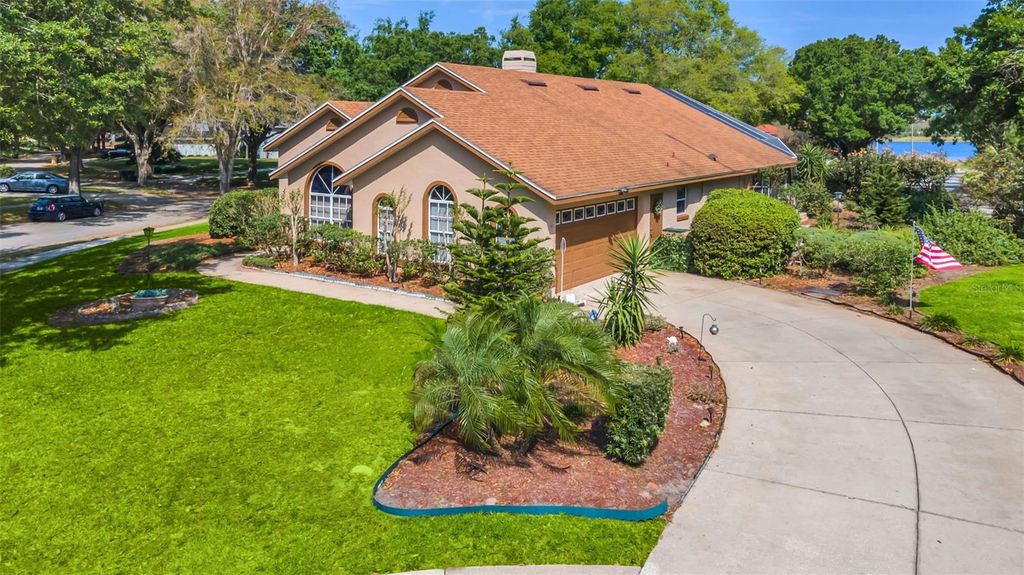 Absolutely gorgeous pool home on a large private half acre corner cul de sac lot with expansive water views. You'll love the open great room, split plan, and tranquil views from the solar heated pool. Some of the outstanding features include: termite bond, engineered hardwood floors, stainless steel appliances, granite counters, security system, water softener, and termite bond. You get all this in a wonderful community featuring manicured grounds on rolling terrain and lake access to Lake Minneola with a community boat ramp. Other community features include playground, park with picnic areas, community pool and tennis courts. What a wonderful place to call home!