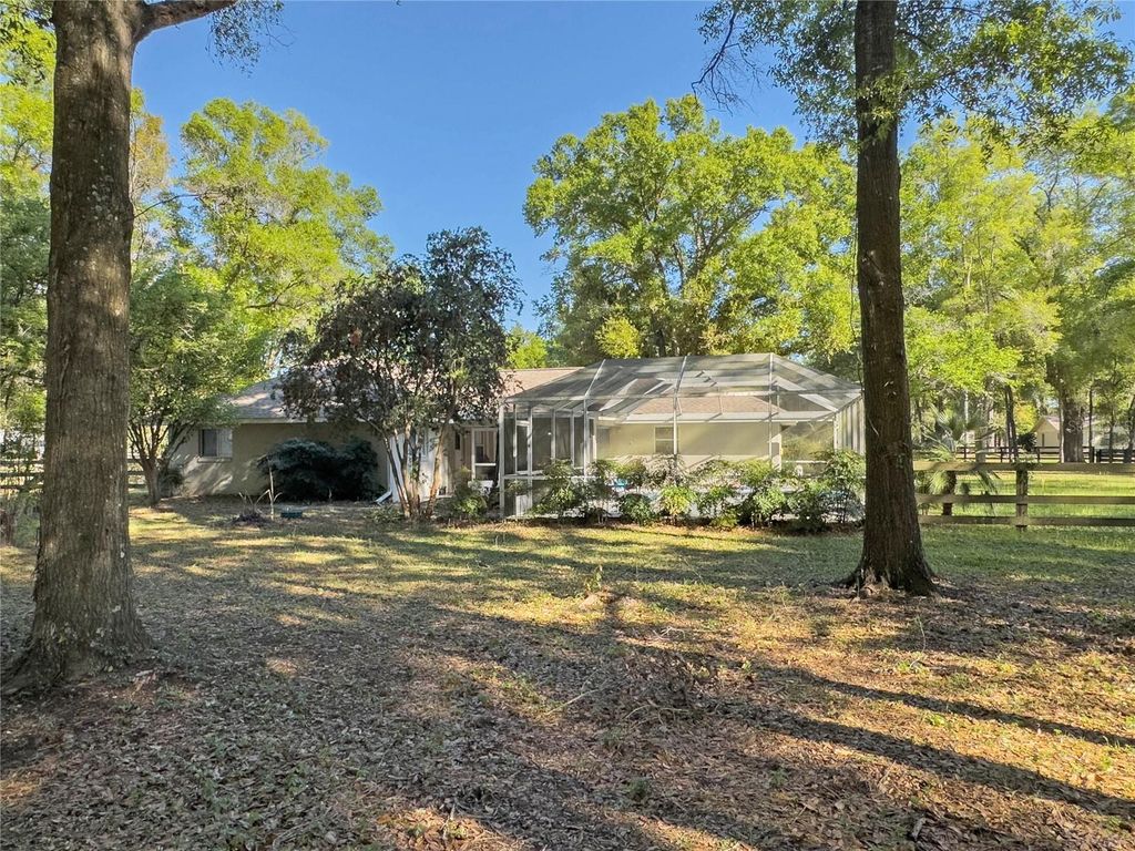 Priced to sell ! By Appointment only! A lot of enjoyment is packed into this 1.3 acre Mini Farm in desirable Meadow Wood Farms. This is Turn-key home that can come full-furnished as Turn-Key Airbnb (furniture negotiable) Built for easy living, this 3/2/2 home with New Roof (2022), new high end durable vinyl flooring with new paint, new blinds throughout & also removed any tree stumps / branches that were surrounding the roof & wires. The split floor plan provides complete privacy for the large on-suite master and the second wing of bedrooms/ guest bath with pool entry. Kitchen is centrally located to service the Den and Dining area that opens out to the screened Pool and porcelain tiled Patio. Separate laundry with new dryer. 2 car Garage with asphalt driveway. Transfer switch for generator. New garage door, New A/C 2018, Well Pump 2017, Garage Door Opener 2019. Zoning is A-1 with some Deed Restrictions. No HOA, Meadow wood Farms is a Horse Friendly Community with endless opportunities to Hike, Bike and Trail Ride along its 17 miles of Roads without even leaving the development. This low maintenance lot is fenced and cross fenced. Plenty of room in the front and side yard for games, (basketball, soccer) and gardening. The large, shaded paddock in the back has two Run-in Horse Stalls, Dog kennel and a large Shed/Workshop. There's room for your horse trailer or RV too. Granny need a flat? You are zoned for a second residence! Located just minutes from the World Equestrian Center, HITS, Shopping, Restaurants, and numerous Medical Facilities... This Mini Farm has all the charm of Country Living yet close to all that Ocala has to explore. Ocala is centrally located between Floridas West Coast Beaches and the East Coast Attractions.