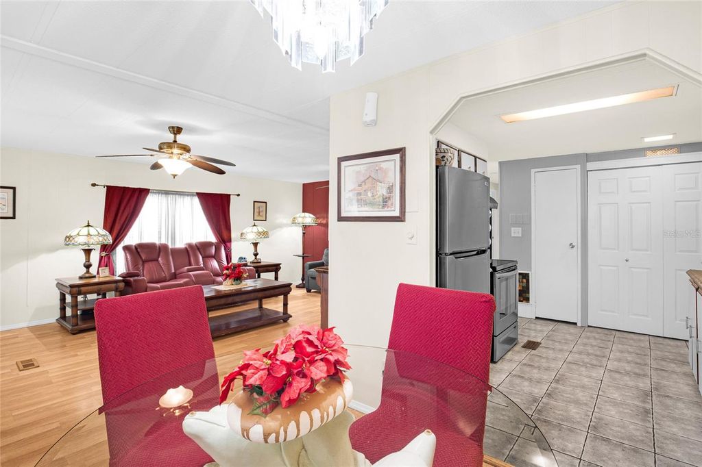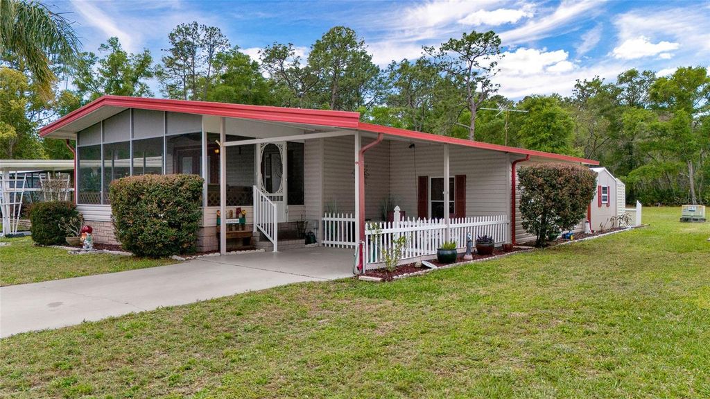 Beautiful property in the Dora Pines 55+ community located in charming Mount Dora, this 2-bedroom, 2-bath home offers a practical layout with a flexible bonus room that can be used as a second living area, office, or hobby space. The home sits on a lot with no rear neighbors, providing a more private setting with wooded views. A back patio offers space to relax or entertain, and the yard includes mature landscaping. Key updates include a new A/C (2025), along with updated electrical and plumbing systems and a year old water heater. A separate utility room adds functionality, and two storage sheds provide additional space for storage or tools.Conveniently positioned near shopping, dining, and major roadways, with access to downtown Mount Dora's shops, restaurants, and local events. This property is a solid option for year-round living or a seasonal residence with added flexibility.