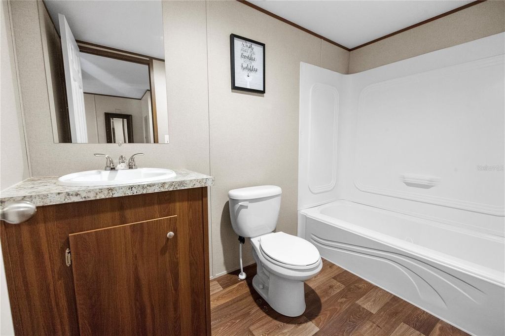 One or more photo(s) has been virtually staged. Living in Ocala adds a bit of serenity to your life. Ocala is loved for its blend of equestrian prestige and outdoor adventure. Known as the "Horse Capital of the World,"home to the World Equestrian Center and surrounded by natural beauty including Silver Springs State Park and the Ocala National Forest. Enjoy nearby kayaking, hiking, horseback riding, and a vibrant historic downtown with shops, dining, and local events year round. A nice escape from the concrete jungle! This one acre homesite features a pristine 2024 manufactured home that qualifies for VA & FHA financing! This is a refreshing change of scenery that allows you to enjoy a wooded view instead of the barren new home community vibe. The main living space and kitchen have pitched ceilings and great natural light. The mid tone wood cabinets are a nice compliment to the laminate floors and neutral paint scheme. Kitchen layout includes a breakfast bar, decent storage & stainless appliances. The primary suite has an ample closet, garden tub & shower. The additional 2 bedrooms share a bath. Everything is tidy and in move-in condition. This is such an affordable way to have it all, land & space to spread out! The land is mostly sand and sod will be a welcomed improvement! Credits will be considered with a reasonable offer!