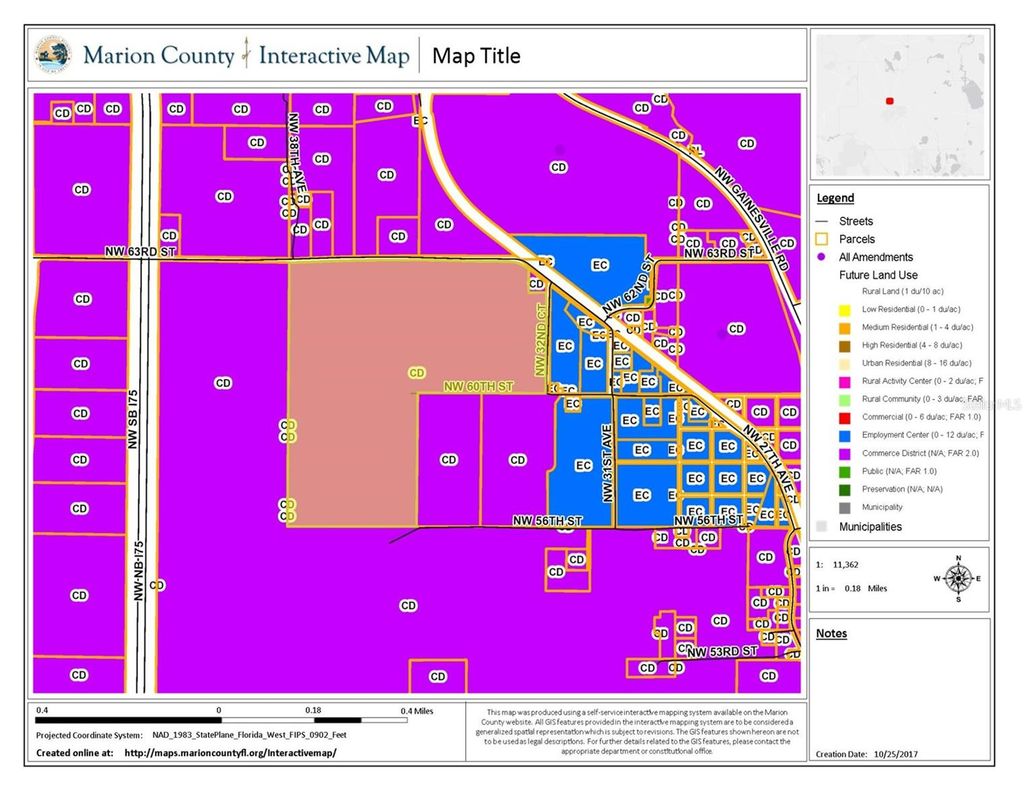 Reach over 34 million customers within a six hour drive of this location in the heart of Central Florida's hottest industrial/distribution corridor. These 119+/- acres near I-75/Hwy 326 interchange offer both heavy power and rail services within an Opportunity Zone. Robust labor market of 287,330 drawing from three county area. Perfect location for e-commerce, distribution or manufacturing. Current access to I-75 via 63rd Street flyover. New $76.2 million I-75 interchange funded and scheduled to begin construction Q4 2025. Corporate neighbors include Amazon, FedEx, Autozone, Chewy, and Green Thumb Industries. Survey, Phase I environmental, geo tech testing, threatened and endangered studies complete and clear. Excellent Workforce Opportunity Zone Visible From I-75 Heavy Power and Rail Available Ideal Location for E-Commerce, Distribution or Manufacturing