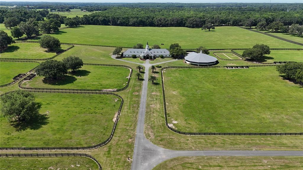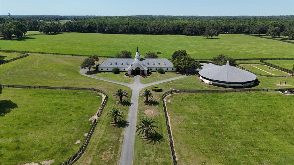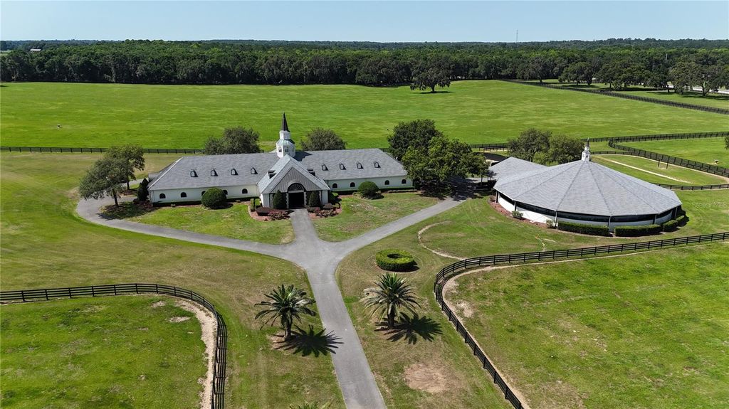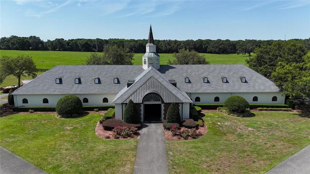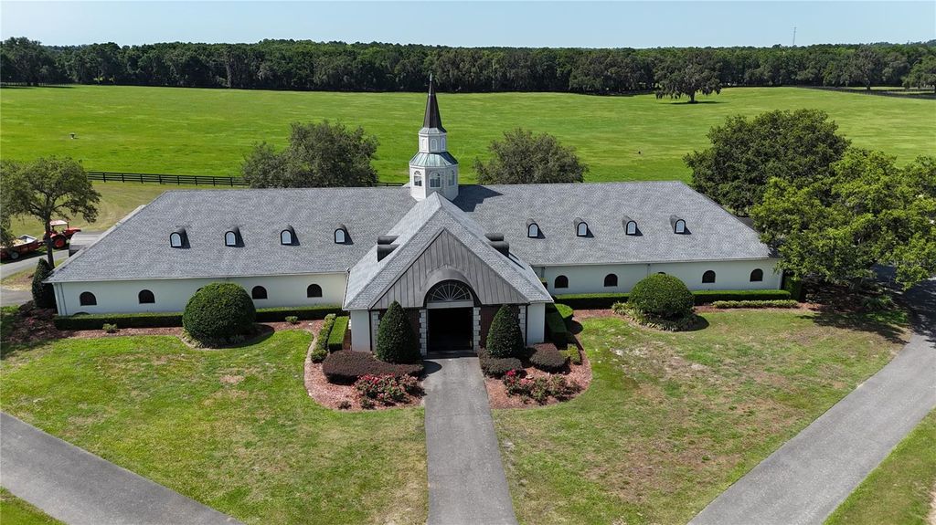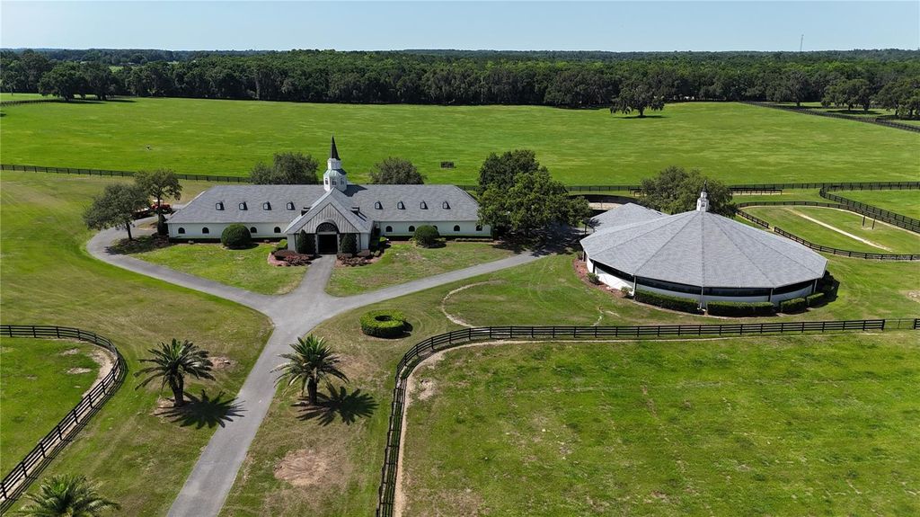 Exceptional Luxury Horse Farm For Sale- 210+/- Acres of Premier Equine Facilities. Discover an unparalleled equestrian estate in the scenic NW part of Marion County. This magnificent property was professionally sculpted and architecturally designed for both function and elegance. This estate property is available, for an additional cost, with two simi-contiguous owner's residence consisting of a 3.3.5 with a 1/1 apartment with 3,988 SF of living area, and a 4/3.5 with 2,428 SF of living area. The elegant office encompasses 3,984 square feet of superior craftsmanship, a robust concrete foundation, a striking brick façade, and durable asphalt shingle roofing. Inside, you'll find a sophisticated lobby/reception area, a comfortable lounge/meeting room, and numerous private offices, including an executive CEO office complete with a beverage bar and a private ¾ bath. The thoughtfully designed layout features a spacious conference room, a copy/fax room, and a kitchen/break area, complemented by a welcoming exterior-covered porch. The overall quality of construction is simply outstanding. The property has fiber optic internet cabling, offering modern connectivity amidst nature's beauty. Spanning approximately 9,618 square feet, the broodmare barn offers 27 stalls, including 24 generously sized 12'X12' stalls and three 12'X17' foaling stalls. With a half bath and a 1-bedroom, 1-bath apartment, this barn combines luxury with essential amenities. Experience the luxury of a 9,618 square-foot training barn constructed with concrete block and adorned with elegant brick accents. This facility includes 23 premium stalls, three 12'X17' foaling stalls, a half bath, a lab area, a feed room, and an inviting 1-bedroom, 1-bath apartment. European free walker, with an inner covered riding area, and a round pen surrounded by meticulously landscaped areas illuminated by uplighting. All barn roofs have been recently replaced with new ones. This extraordinary horse farm offers a wealth of amenities and unmatched quality that truly must be seen and appreciated. Don't miss your chance to own this exceptional equestrian property - schedule a visit today! Adjoining 190 +/- Acres is also available see MLS OM691209. Two additional residences on 18.5+/- acres each available.