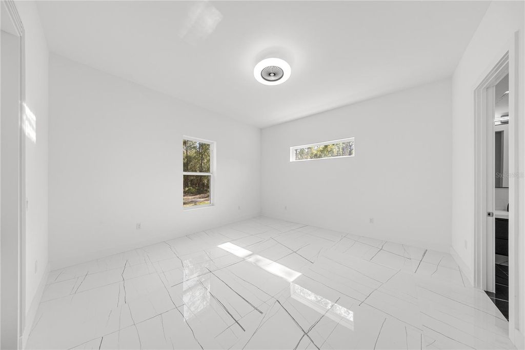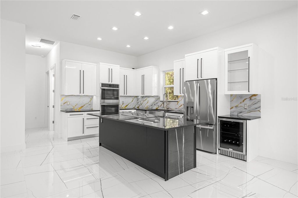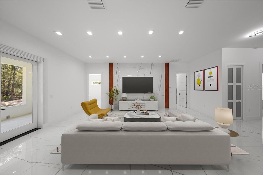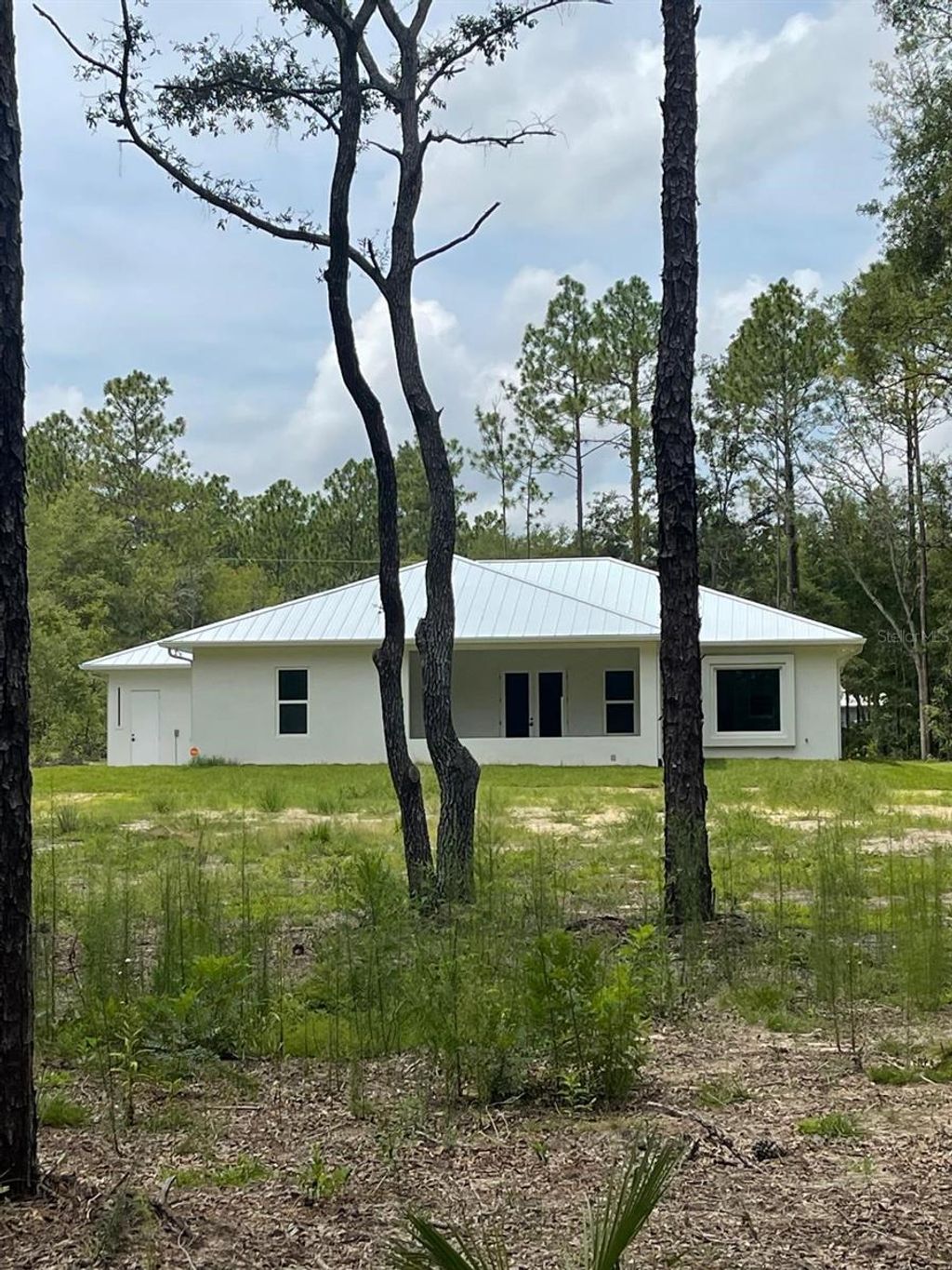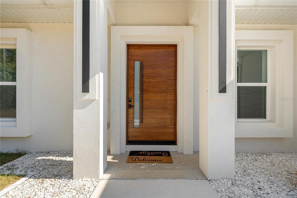 One or more photo(s) has been virtually staged. PRICE REPOSITIONING - ICF -INSULATED CONCRETE FORMS- HOME that offers improved energy efficiency, thermal insulation, hurricane resistant, acoustic insulation with impressive strength and reliability. This is a New Spec Home for the growing Ocala area. Located in one of the most tranquil subdivision of Marion County, Rolling Hills, 15 minutes from the WEC, near the main National Parks/Springs of Central Florida, in a 1.54 acres lot. Built with 150 ft set back from the main road, this 2,284 sq ft interior living area + 880 sq ft of insulated garage home with standing seam metal roof, has 4 bedrooms, 3 bathrooms, an open concept kitchen / dining-room / living-room / entertainment area, large laundry/mud/utility room with added tub/sink, 3 vehicles garage, plenty of closet space. Very high ceiling of almost 11' tall and 4'x4' polished Sahara Spanish tile throughout the entire house with all interior doors of 8' of solid wood and low energy windows, custom designed kitchen with 112" x 46" granite island and countertops, stainless steel farmhouse apron front kitchen sink, GE series appliances, double oven, double door refrigerator, wine cooler, induction cooktop, downdraft ventilation system, Samsung Washer/Dryer. Interior Lighting: 28 pieces recessed lighting LED 6"x6" square 6500K on dimmers throughout. Exterior Lighting: pencil LED lights on exterior columns and front and back of garage + LED ceiling light and Spot lights/Sensors on all 5 corners of the house. The beautiful designed driveway leads you to the 4'x8' solid mahogany front door. For the exterior around the house: hydro-seeding system to grow lawn from seeds, greatly beneficial. Irrigation system is in place.6" Seamless Gutters with full Leaf Guards throughout; includes underground drain lines. Electrical exterior connection for generator (Stub Out) in place.
