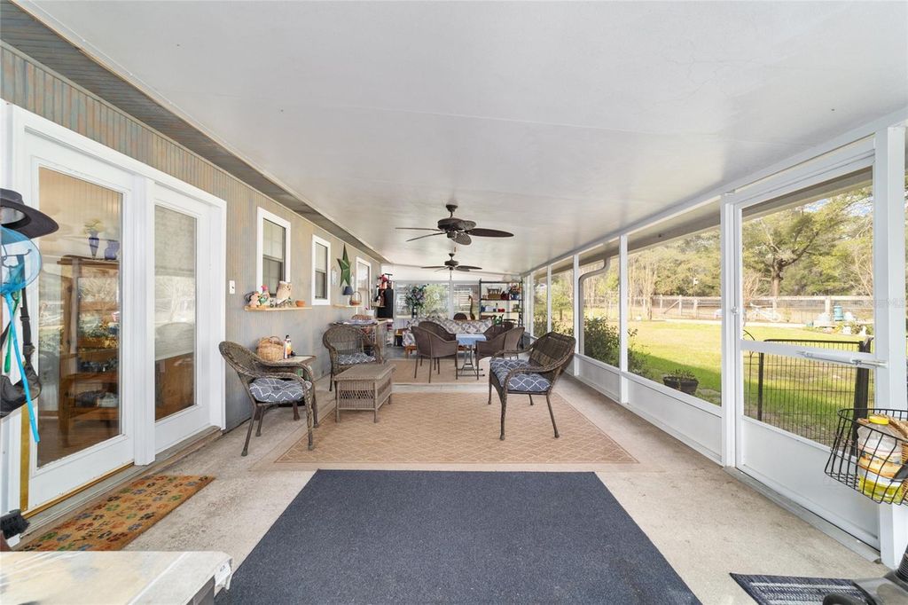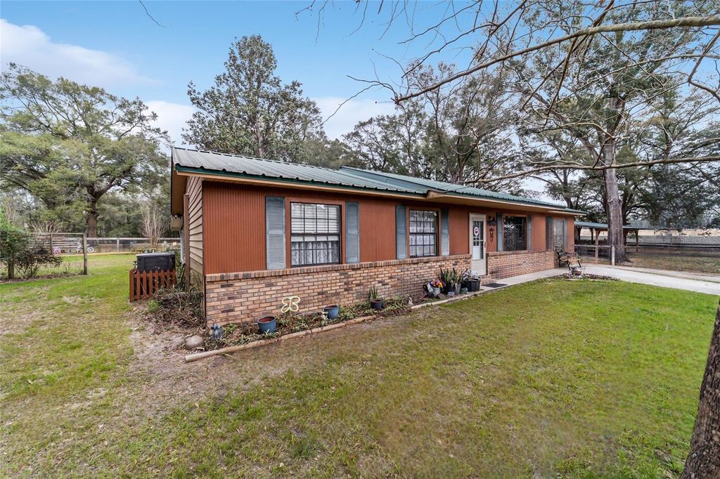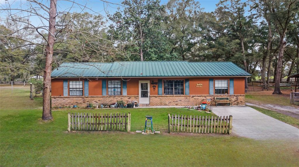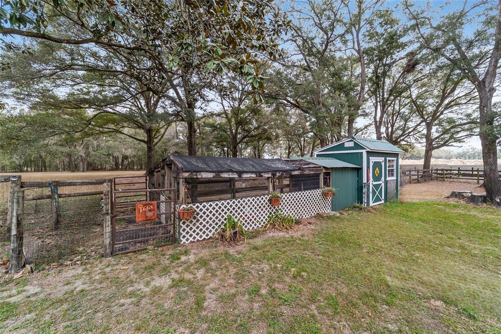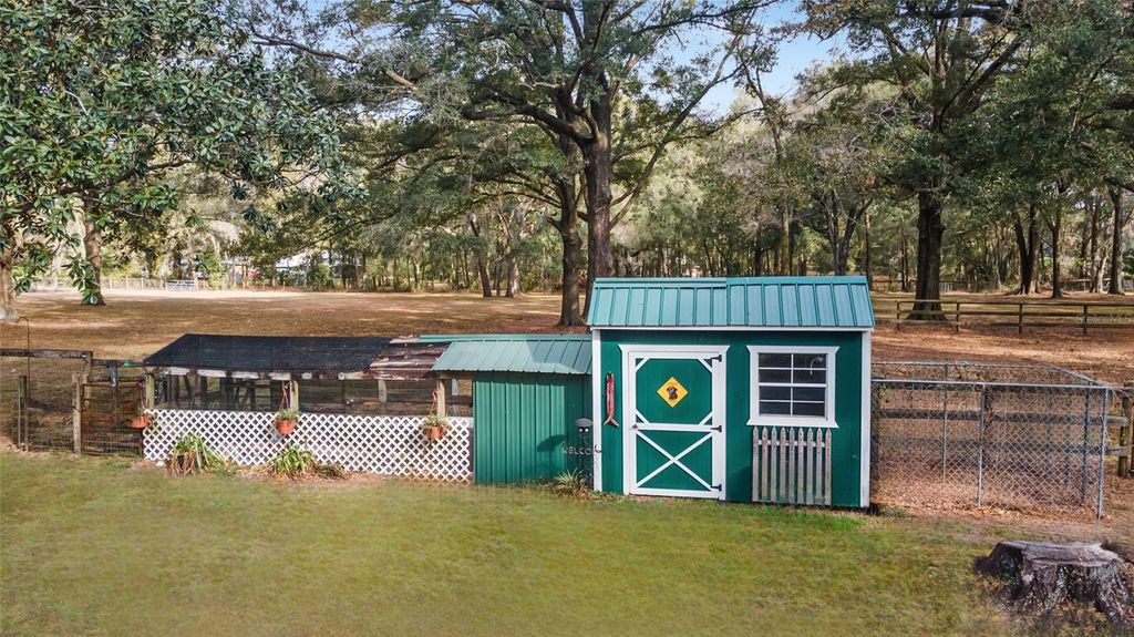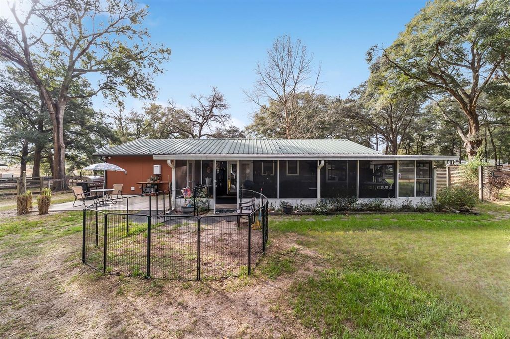 Charming Horse Farm Just Minutes from the City - A Rare Find in Ocala! Nestled on nearly 5 serene acres with no-climb fencing and towering live oaks and magnolias, this equestrian property offers the perfect blend of rural charm and modern convenience. Located on a quiet cul-de-sac, yet just minutes from the renowned World Equestrian Center and Ocala's best shopping, dining, and healthcare, this is a dream come true for horse lovers and nature enthusiasts alike. The 3-bedroom, 2-bath home is designed for comfort, featuring large windows that bathe each room in natural light while offering picturesque views of the property. Wood-look tile flooring, ample storage, and a thoughtfully designed spacious living area create a welcoming atmosphere. The dining area and galley kitchen flow effortlessly into a large laundry room with abundant cabinetry, perfect for extra storage or a huge pantry. Step outside to the expansive screened porch and adjoining patio"”an idyllic spot to enjoy your morning coffee, unwind with a glass of wine, or entertain guests while overlooking the paddocks. Equestrians will appreciate the 6 horse paddocks and the center-aisle pole barn, ready for you to customize with your own stalls. Additional outbuildings include a sizeable shed (ideal as a workshop or potting shed), a detached 3-bay garage with electric and water, and a storage shed with an attached chicken coop and run. Recent updates include whole-house plumbing, A/C, hot-water heater, and laminate flooring in bedrooms and kitchen. Whether you're an avid rider, hobby farmer, or someone who simply craves peaceful country living without sacrificing city amenities, this property is a rare gem in the heart of Florida's Horse Country. ?? Minutes from World Equestrian Center & Ocala's Best Amenities ?? Move-In Ready 3BR/2BA Home with Scenic Views ?? 6 Paddocks + Customizable Pole Barn ?? Towering Oaks & Tranquil Setting ?? Detached 3-Bay Garage + Multiple Outbuildings This one-of-a-kind property won't last long"”schedule your private tour today