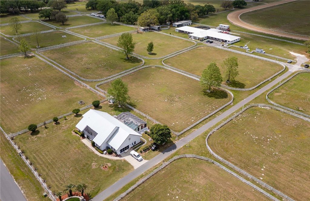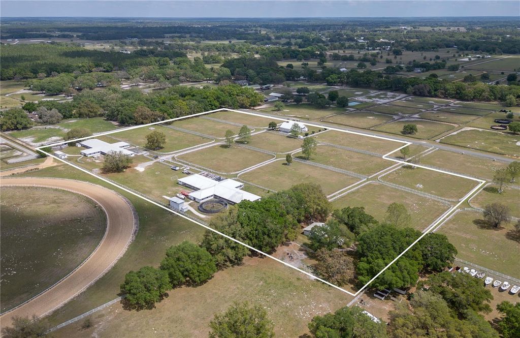 Set within the elite Starting Point Training Complex, this 20-acre turnkey equestrian facility offers deeded access to a 5/8-mile irrigated racetrack with starting gate, private viewing stand, and riding trails"”ideal for year-round training at a professional level. Purposefully built for equine operations, the property features an Aqua Equine Treadmill in a dedicated 3-stall barn, two Eurocisers, two round pens, and 10 paddocks- each fenced and cross-fenced with waterlines to every paddock, Stabling includes a 42-stall barn, 36-stall barn, 8-stall barn,3 stall barn and an additional 3-stalls with the Aqua Treadmill. Residential accommodations match the quality of the facility. The main home features 5-bedrooms with en-suite baths, a screen enclosed pool, and sweeping views across the farm. For staff or guest use, the spacious 3-bedroom, 2-bath barn apartment has been recently updated with luxury vinyl plank flooring. Located under 15 miles from the World Equestrian Center and less than six miles from HITS, with easy access to major roads and Ocala's full spectrum of equestrian service providers and retailers, this is a strategic base for professionals looking to take their venture to the next level. Only 20 acres of the 40 acres showing in property appraiser conveys.