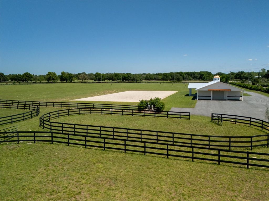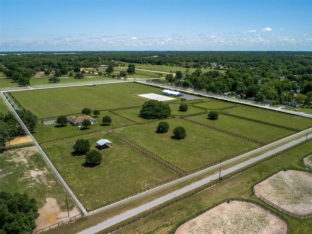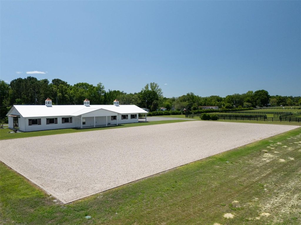 Located just 8 minutes from the World Equestrian Center and 10 minutes from HITS, this fully fenced 22.44-acre farm in Ocala offers a blend of comfort, functionality, and convenience. The 3-bedroom, 2-bath home offers an open floor plan and high tray ceilings throughout the main living areas. A screened-in back patio offers a relaxing space to enjoy the outdoors, while the beautifully paved driveway provides ample parking and leads to a spacious 2-car garage. A waterfall feature in the front garden adds a distinctive and welcoming touch to the property. The block barn on the property includes 12 stalls with excellent ventilation, a tack room, two wash/groom stalls, and a laundry room, providing all the essentials for horse care. A comfortable office and kitchenette make managing operations easy, and the barn also includes 1.5 bathrooms for added convenience. The property includes a 100x200 synthetic surface arena with a concrete border and irrigation, providing a perfect setting for training. Whether you're a competitive rider, trainer, or equestrian enthusiast, this property offers everything you need for success, making it an outstanding opportunity to own a premier piece of Ocala's equestrian scene!