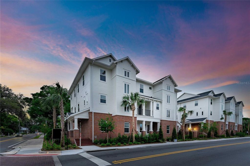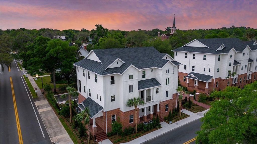 Experience vibrant downtown living in this brand-new, beautifully constructed townhome located just steps from Ocala's historic square, boutique shopping, and top-rated restaurants. This 3-bedroom, 3.5-bathroom residence offers the perfect blend of modern style, comfort, and convenience. Step inside to an open-concept living, dining, and kitchen space adorned with custom modern finishes, sleek cabinetry, and designer lighting. The gourmet kitchen is ideal for entertaining, flowing seamlessly into the spacious living area and out to a private balcony with stunning views of downtown. Each of the three levels has been thoughtfully designed, featuring a luxurious primary suite complete with a spa-inspired bathroom and an oversized walk-in closet. Two additional en-suite bedrooms provide comfort and privacy for guests or family members. Enjoy the convenience of a 2-car garage, low-maintenance living with HOA-managed landscaping, and the security of a gated community. Relax with neighbors at the community's gas firepit or take a short stroll to downtown Ocala. This is the ideal home for those seeking upscale, walkable city living with the peace of mind that comes with new construction.