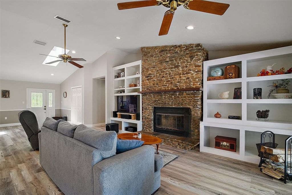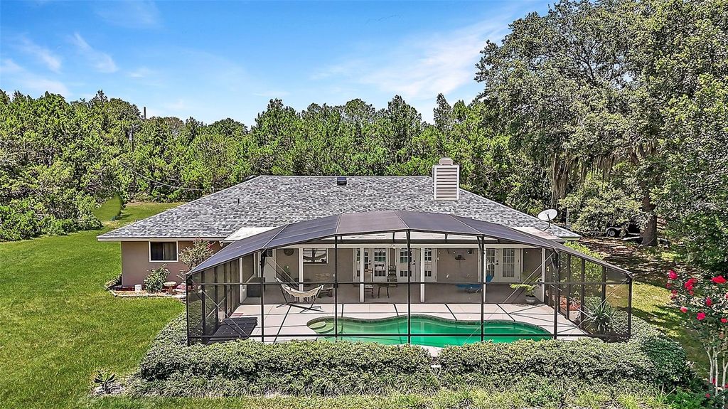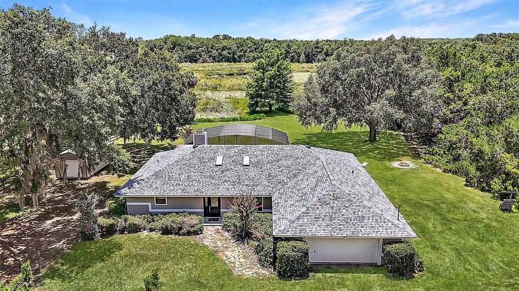 Tranquil 6-Acre Pool Home in Umatilla, FL - Just Minutes from The Villages with a Brand New Roof! Tucked beneath a canopy of majestic Grandaddy oaks, this stunning 3-bedroom, 3-bathroom pool home sits on 6 beautifully maintained acres in the heart of Umatilla. Offering over 2,400 square feet of living space and 4,376 total square feet under roof, this property delivers the perfect blend of peaceful, private country living and convenient access to nearby amenities"”just 13 miles to The Villages, 18 miles to downtown Mount Dora, and only 8 miles to Umatilla's shops, schools, and restaurants. The setting here is truly special. From the moment you step outside, you'll feel immersed in nature. Enjoy your mornings by the screened-in gunite pool, where breathtaking sunsets light up the conservation views behind the home. A canal at the rear leads to a large lake, perfect for bass fishing or simply enjoying the serene water. Wildlife is a daily delight"”deer, turkeys, and birds frequent the property, adding to its tranquil, Old Florida charm. There's even a firepit for cozy evenings under the stars and plenty of space to build a workshop, RV pad, or carport thanks to agricultural zoning and no deed restrictions. Inside, the home has been tastefully updated while maintaining its warm, country-inspired feel. The open-concept floor plan seamlessly connects the main living areas, anchored by a floor-to-ceiling cobblestone wood burning fireplace and built-in shelving. Two sets of French doors open to the screened pool area, offering effortless indoor-outdoor living. New ceiling fans and updated lighting throughout the home bring a fresh, modern touch. The expansive farmhouse-style kitchen is a standout, featuring stainless steel appliances, granite countertops, under-cabinet and recessed lighting, a large farmhouse sink with views of the pool and backyard, and ample white cabinetry for storage. A spacious 10x7 butler's pantry provides even more prep and storage space, complete with its own sink, fridge, and granite counters"”ideal for entertaining. The generously sized master suite is a peaceful retreat with his-and-hers closets, French doors to the pool area, and a private bathroom with dual sinks and a walk-in tiled shower. Two guest bedrooms, each with large closets, provide comfortable accommodations for family or visitors, while the inside laundry room with utility sink adds everyday convenience. The exterior features are just as impressive. The oversized two-car garage and large storage shed offer plenty of space for equipment and hobbies. Manicured landscaping surrounds the home, and there's still room to bring animals, add gardens, or customize the land to suit your lifestyle. Whether you're an outdoor enthusiast, an equestrian looking for space, or simply someone dreaming of a quiet life surrounded by nature, this Umatilla property delivers. You're just 25 miles to the Ocala National Forest, 19 minutes to Alexander Springs for summertime swimming, and not far from trail systems like Santos, Pruitt, and Landbridge for hiking, biking, or riding. If you're seeking space, privacy, and convenience"”this is the kind of property that rarely comes available. Schedule your tour today!