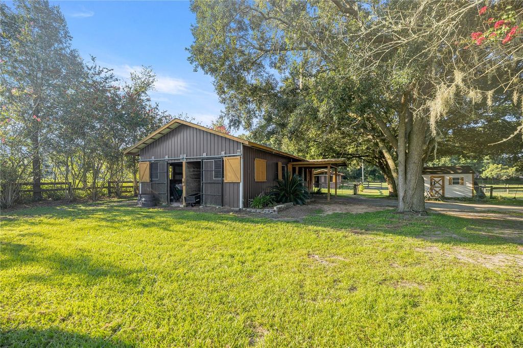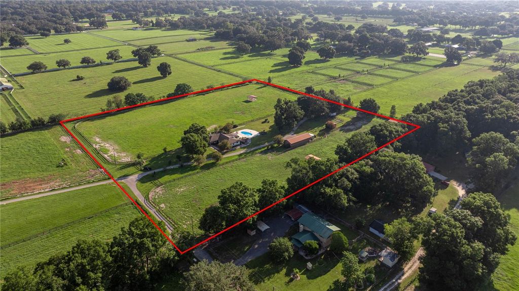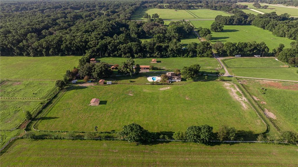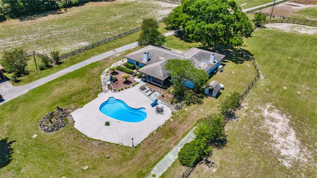 NEW ROOF PRIOR TO CLOSING! *Preferred lender offering a $5,000 credit towards closing costs* Welcome to your dream countryside retreat! Nestled on 10 acres, this versatile property offers the perfect blend of comfortable living and functional equestrian amenities. The 3 bedroom, 2 bathroom home provides a warm and inviting atmosphere with plenty of natural light. Who wouldn't love the added benefit of an in ground pool and a hot tub in the lanai! Equestrian enthusiasts will love the 5 stall barn (4 stalls are 12x12, 1 stall is 24x12), 3 loafing sheds, and 3 additional 15x15 single stall barns, giving you plenty of space for boarding and training, and the ability to stay out of inclement weather. There is a 60' 4 bay garage with storage room and loft, big enough for both tractors and vehicles. With open land to roam and the infrastructure already in place, this property is ready for your own farm vision. Farm is located less than 2 miles from Florida Horse Park and Greenway Trails. Pool pump replaced in 2024, A/C replaced in 2025. Motivated Seller will consider all offers!