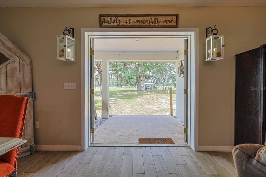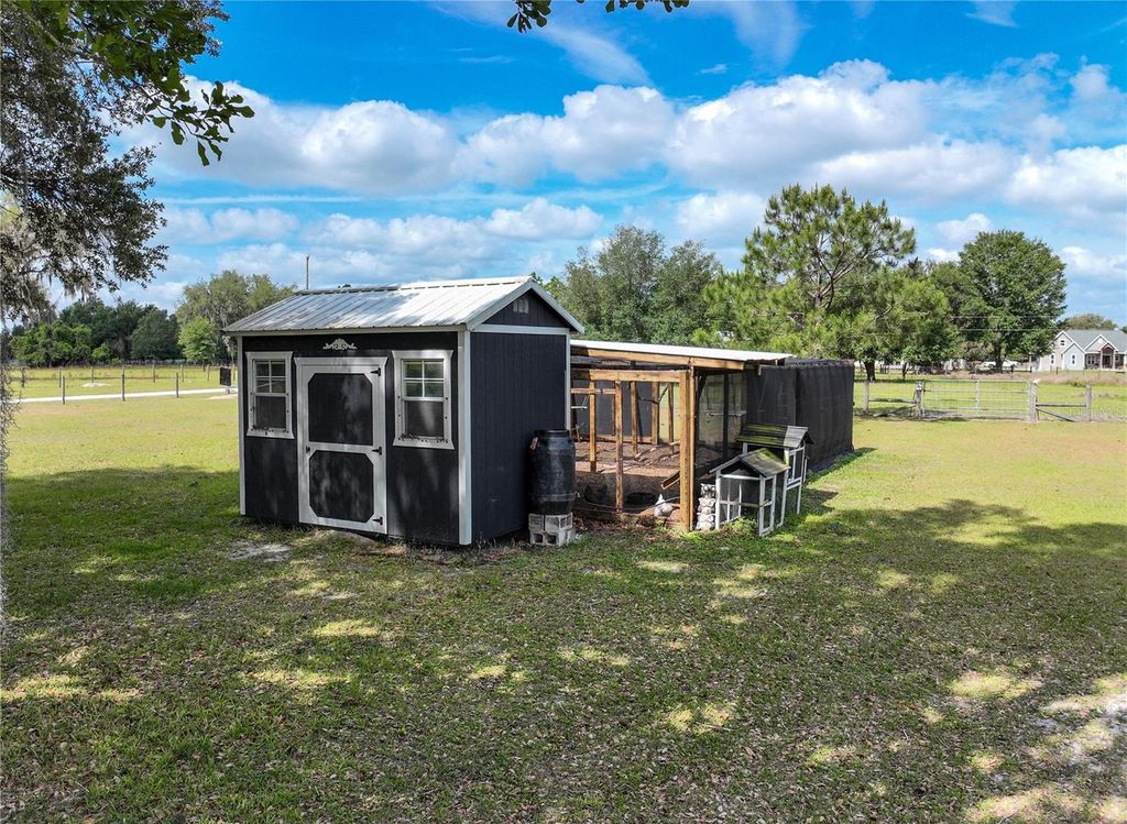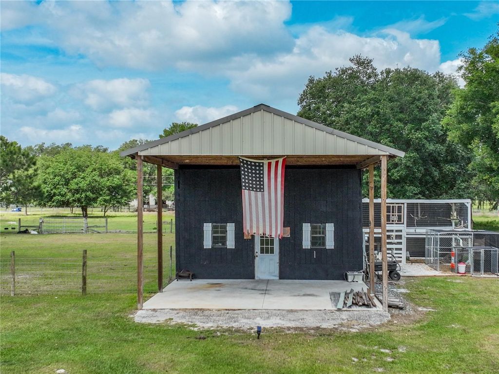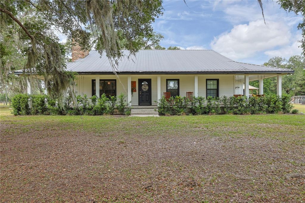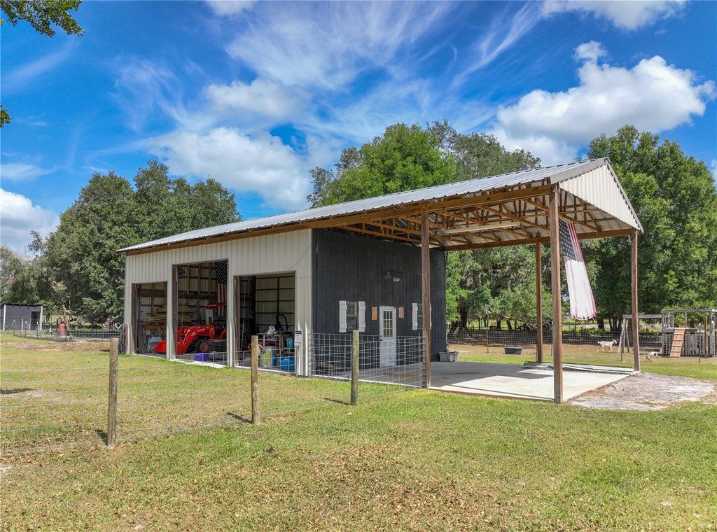 Charming 10.08-Acre Farmstead in Webster, FL ! A True Country Retreat! Escape to the tranquility of rural living with this beautifully maintained 10.08-acre farm, perfectly set up for your agricultural dreams. Located in the peaceful countryside of Webster, Florida, this fully fenced property is ready for horses, goats, chickens, and more! The rustic 4-bedroom, 2.5-bath home offers 2,148 sq. ft. of warm, inviting living space, featuring a wraparound porch perfect for soaking in the serene views. Inside, you'll find ceramic tile in all common areas, engineered hardwood floors in the bedrooms and family room, and a cozy wood-burning fireplace that adds the perfect country charm. The kitchen boasts tiled countertops and solid wood cabinetry, creating a warm and functional space for home-cooked meals. A durable metal roof offers peace of mind and long-term reliability. For those who love the outdoors or need space for animals, this property delivers with: 4 fully fenced pastures (electric fencing) 6-stall horse barn with water and electric , Goat shelter ,Bird aviary, chicken coop and a 3-bay garage with workshop ideal for equipment, vehicles, or hobbies. All structures have water connection. New well pump and tank, new drain field. Whether you're looking for a working farm, hobby homestead, or just a peaceful place to enjoy the countryside, this property offers the perfect blend of functionality, comfort, and charm.