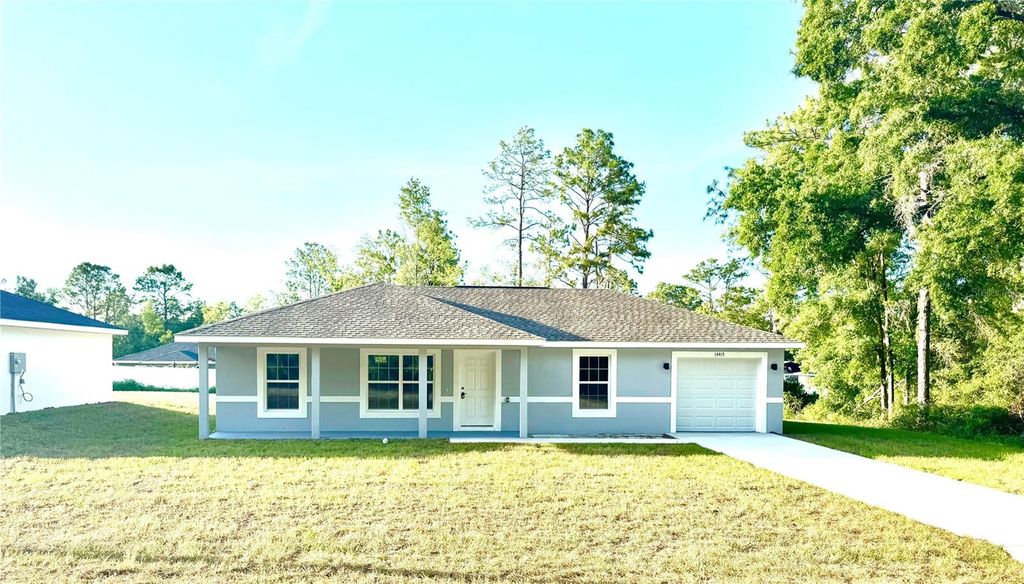 MOVE IN READY, BRAND-NEW HOME, JUST COMPLETED, Check out this beautiful new-construction home with 3 bedrooms, 2 baths and a 1-car GARAGE with just under 1,100 sq. ft. of living area located 14 minutes from WEC and convenient to both Ocala, Dunnellon, and Crystal River. This beautiful home features a split bedroom plan with a spacious open-concept kitchen overlooking the family room, making it easy to stay involved in all the action! Luxury vinyl plank flooring spans all throughout the home, and designer tiles adorn the walls in the showers. The light and bright kitchen boasts wood cabinets and beautiful granite countertops. This kitchen also comes equipped with a full set of Stainless Steel appliances. The home sits on .23 of an acre leaving plenty of room for lots of enjoyment in the spacious backyard! This is ONE of TWO HOME(s) for sale by this same seller in the same area. Buy this one for you or buy both and bring the rest of the family along too. Call today for a showing so we can welcome you to your new home!