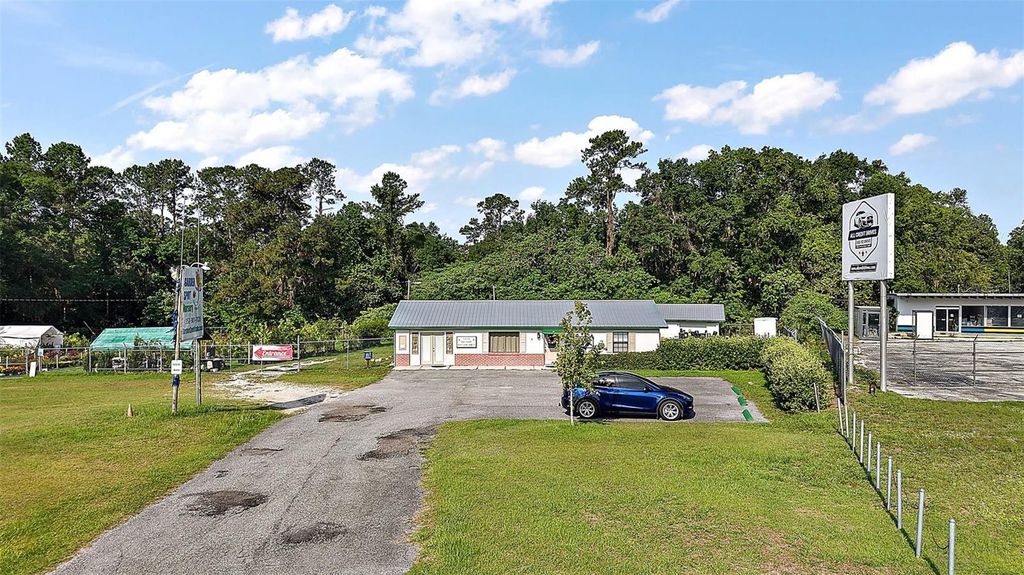 1300 sq ft building, fully rehabbed in 2024, on 1.84 Acres with 220ft of frontage on Hwy 441 / US 301 / Hwy 27, with B-4, B-5, and R-1 zoning, this property will accommodate any number of commercial applications. With an average traffic count of 29,000 cars daily, your business will get maximum exposure. Located just South of Ocala, and North of Belleview and The Villages, your business will be positioned for exceptional growth, as The Villages and Ocala were voted #1 and #4 fastest growing MSA's in the Country, percentage wise. The main building consists of 3 offices, a conference room, kitchen, and bathroom, and the second building provides 800 sq ft of garage, workshop, storage, etc. Newer metal roofs on both buildings.