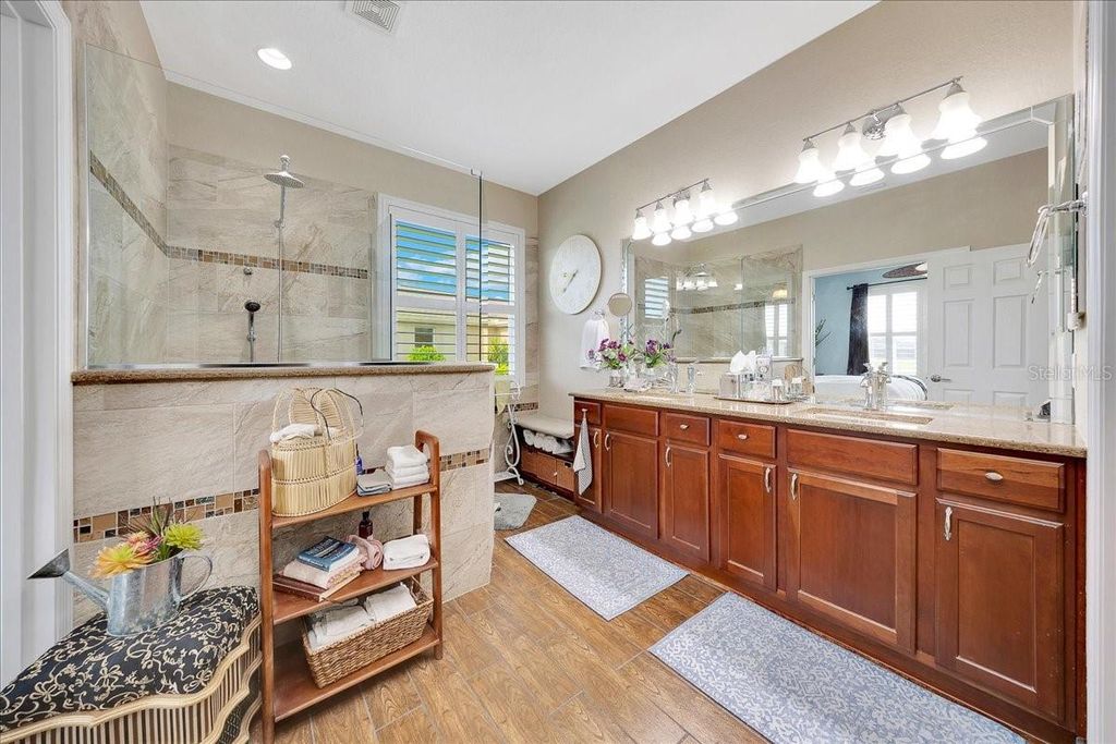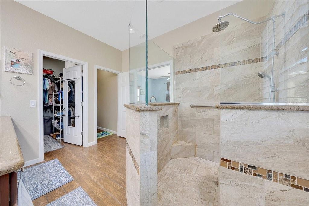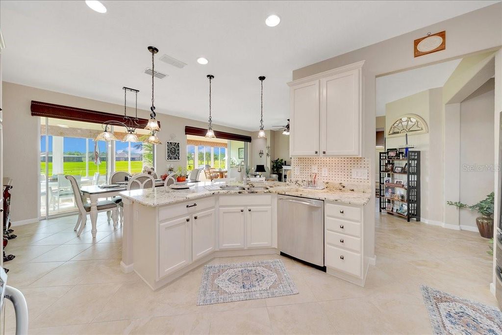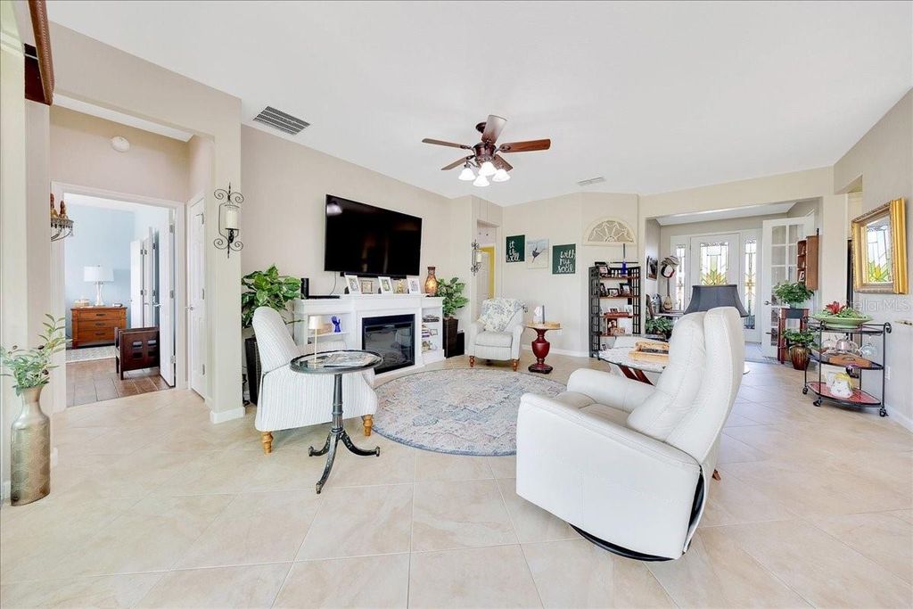 Motivated Seller!!! Best View in Stone Creek! Golf Course and Water View! 3 Bedrooms PLUS Office! This immaculately maintained, custom Hanover model captures the essence of effortless, elevated living "” complete with a Generac whole-home generator, dedicated golf cart garage, and panoramic views of both the fairway and the water. Perfectly positioned on the 7th-hole tee box in the gated 55+ Stone Creek Golf Course Community, this home offers serenity, security, and style in one harmonious setting. From the moment you arrive, the scene is set with mature landscaping, fresh exterior paint, and a stamped driveway that welcomes you home. A new roof (2024) and A/C (2020) bring confidence and peace of mind, while the upgraded irrigation system keeps the grounds lush and vibrant all year. Inside, sunlight dances through plantation shutters and fills the open-concept living area with warmth and ease. The Great Room opens to a glass-enclosed lanai "” the perfect place to sit year-round, sipping your morning coffee or watching the sunset shimmer over the greens and lake. Life here moves at the pace of joy and reflection, surrounded by beauty. The chef's kitchen invites creativity and conversation with new LED lighting, granite countertops, crisp white cabinets with pull-outs, stainless appliances, and a solar tube that softly illuminates every detail. The Owner's Suite is a peaceful retreat with tranquil views, a generous walk-in closet, and an upgraded en suite bath featuring double Corian sinks and a glass-enclosed walk-in shower. A flex room provides space for your passions "” an office, art studio, or meditation nook "” while thoughtful touches like a whole-home water softener, stack washer and dryer, and oversized garage with epoxy flooring and overhead storage make everyday living effortless. Whether you're hosting friends, cruising to a neighbor's gathering in your golf cart, or simply soaking in the view from your lanai, this home offers a lifestyle of comfort, connection, and quiet luxury. Schedule your private showing today and experience the best of Stone Creek living.