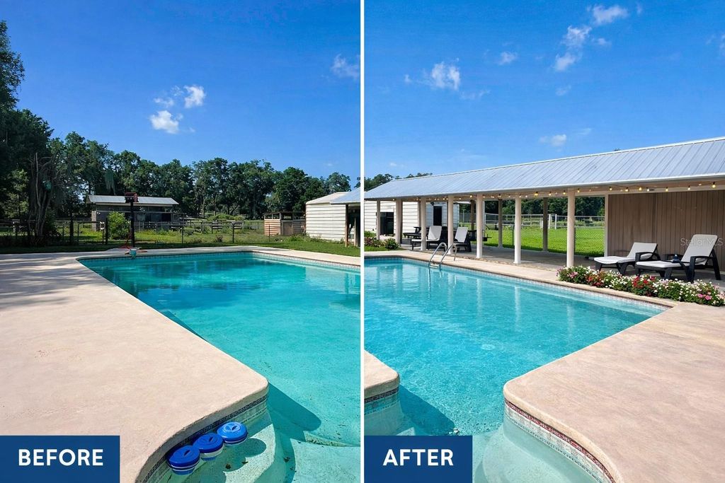 Five beautiful acres. Horse-ready infrastructure. No HOA. Now offered at $499,000. If you've been waiting for an affordable Anthony farm that actually works, this is it. This 5-acre equestrian-ready property is one of the lowest-priced true horse farms in Marion County, offering functionality and usable land that's increasingly hard to find at this price point. The farm is thoughtfully laid out with four established paddocks, cross-fencing, a 2-stall barn with feed room and wash rack, RV hookup, and two separate driveways"”designed for real farm use, not just acreage on paper. Select images have been virtually enhanced to illustrate the property's potential and possible cosmetic improvements. The 4-bedroom, 2-bath ranch-style home is solid, warm, and practical, and has passed a 4-point inspection with ease. Interior features include no carpet, wood flooring, solid cabinetry, and an enclosed front porch filled with natural light. Major improvements include a metal roof (2021), whole-home water softener, and regularly maintained systems, providing peace of mind for the next owner. Outdoor living is a highlight, with a private lap-style in-ground pool and a large covered pavilion, ideal for gatherings, quiet evenings, or relaxing after a day with the horses. The pool does require resurfacing"”pricing reflects current condition and provides an opportunity for customization. What truly sets this property apart is the land itself"”flat, open, usable, and thoughtfully laid out, with ample room to build a larger main residence while keeping the existing home as a guest house, in-law suite, or rental (buyer to verify). Located approximately 20 minutes from the World Equestrian Center, with paved road access, low taxes, and no HOA, this property offers freedom, flexibility, and long-term upside in a market where usable acreage is becoming increasingly rare. If you want real acreage, real usability, and real value"”don't miss this opportunity.