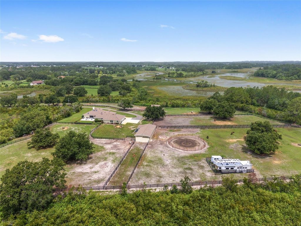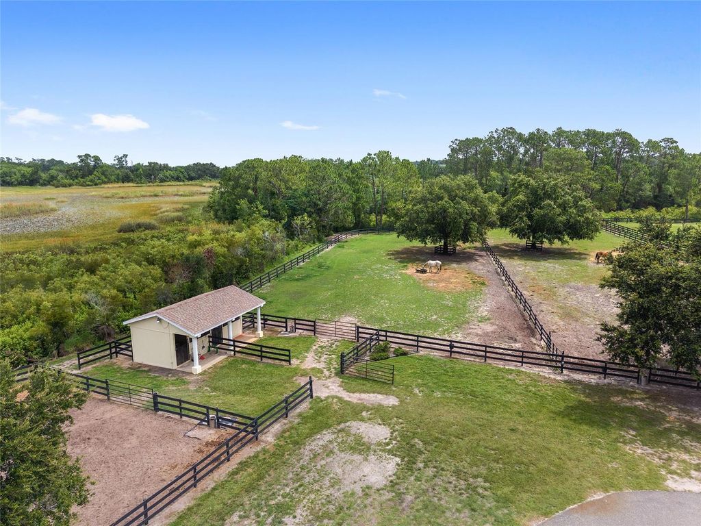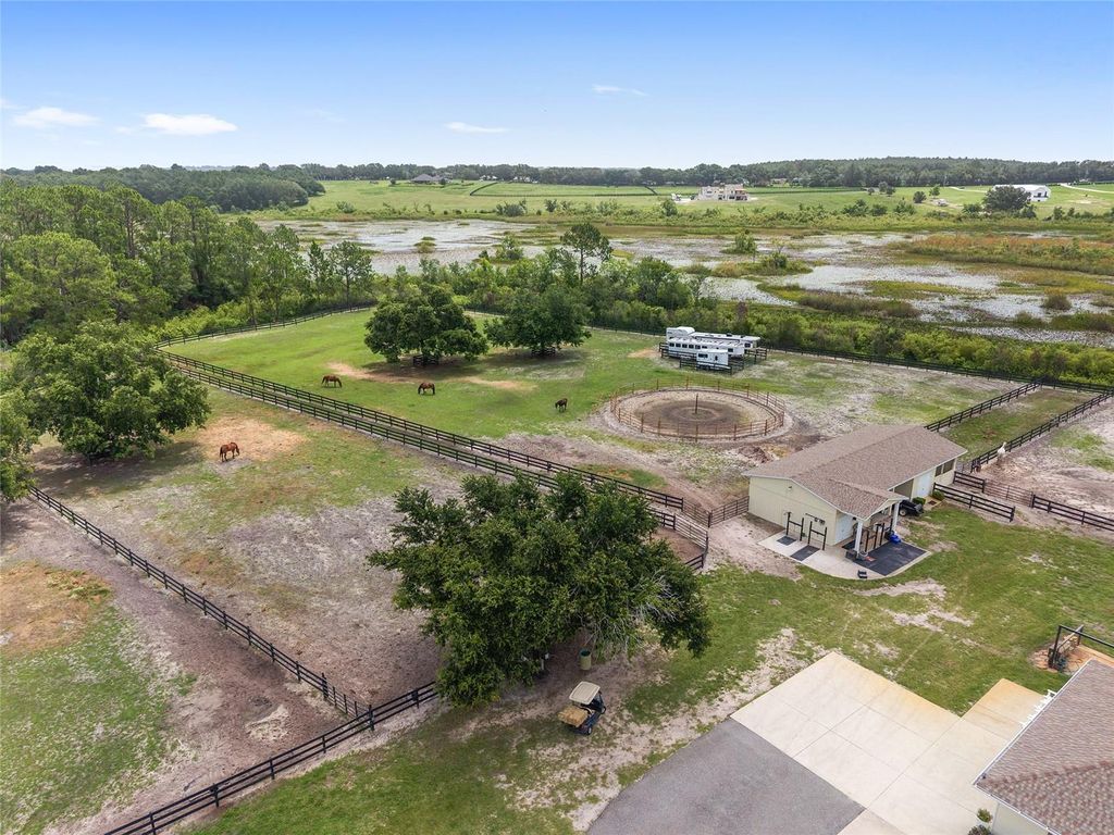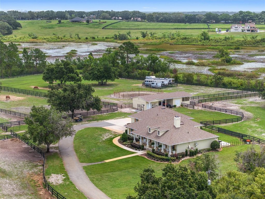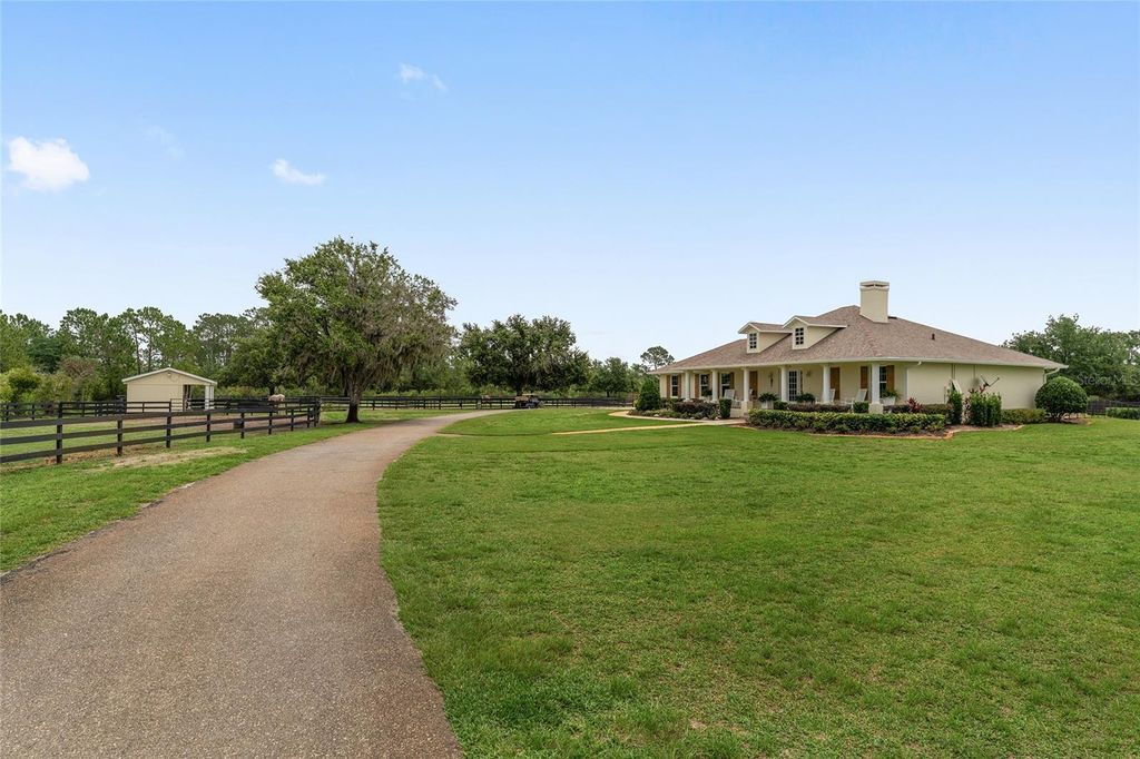 Welcome to this Immaculate Farm, a move-in-ready equestrian estate tucked away at the end of scenic Old Grove Road in beautiful Clermont, Florida. Spanning over 24+ acres, with the main residence situated on 7+ acres private and with security gate. Located just outside the growing city of Clermont and by Lake Louisa State Park. Louisa State park offers about 15 miles of horse trails and also Equine camping opportunities. This turnkey property is thoughtfully designed for both comfortable living and premium horse care. At the heart of the farm is a spacious 3-bedroom, 2-bathroom ranch-style home offering over 2,500 sq ft of updated living space. Paved driveway up to the home where you will enjoy panoramic views of the horse facilities from nearly every angle. The home features a split floor plan for enhanced privacy, exterior paint (2025), and all-new roofs on every building (except the shed) and fencing completely repainted in 2024. The home features a light-filled living room that flows into a private dining room. A kitchen and bathrooms with quartz countertops and modern finishes. Renovated bathrooms with fresh, updated design and quartz counter tops. A master suite extension with private hallway, large 7' x 17' walk-in closet. An expansive laundry area with 20+ ft of built-in storage. A newly added 2-car garage with a half bath. A bonus office/playroom (20 x 12) with walk-in closet. For horse enthusiasts, the property is truly a dream with 6 irrigated pastures, each equipped with Nelson automatic waterers. A 75' x 130' riding arena at the entrance which includes a 12' x 30' shed with electricity"”perfect for additional storage. The arena has water available for horses. The farms has Two barns: "¢ 2-stall barn with runs "¢ 4-stall barn with large tack room with dehumidifier and feed room with AC wall unit Ride around the property on the outside the fenced pastures. One of the pastures includes a round pen. On top of all of these, the farm has Two RV hook-ups (50 AMP and 30 AMP); two wells to support the home and the farm's irrigation needs. Just a short drive to Orlando, Ocala, and Tampa. Whether you're looking for a full-time residence or a seasonal retreat, This farm offers an exceptional blend of rural tranquility, equestrian functionality, and modern comfort. Don't' miss this opportunity to enjoy central Florida at its best.