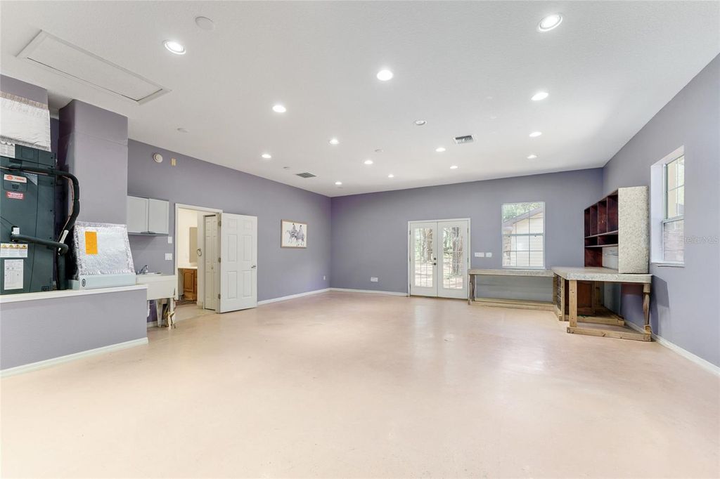 Welcome to this extraordinary 4.53-acre gated estate "FEATURING TWO CUSTOM- BUILT HOMES" with NO HOA, designed for luxury, entertainment, and multigenerational living. The "MAIN RESIDENCE" offers 3000+ square feet with 4 bedrooms, 3 baths, soaring cathedral ceilings, a chef's kitchen with granite countertops, ample cabinetry, and an open eat-in breakfast bar, plus a private movie theater, game room, and screened saltwater pool with jacuzzi. The expansive owner's suite is a true retreat with direct pool access, beautiful property views, dual vanities, custom closets, a garden tub, and a walk-in steam shower. The "DETACHED GUEST HOUSE" 2,593 sq. ft. that includes 2 bedrooms, 2 baths, a library, Florida room, bonus room, and a separate 1-bedroom apartment with full kitchen. Outdoor living is elevated with a "PROFESSIONAL-SIZE LIGHTED TENNIS COURT", that can be used for tennis, basketball, pickleball, or volleyball, as well as multiple outbuildings including a 4-bay garage with gym, RV/boat carport, powered workshop, and chicken coop. Ideally located near Ocklawaha Prairie, Lake Weir, The Villages, and Ocala, this one-of-a-kind property is ready to welcome its next owner. Schedule your private tour today to experience what luxury county living has to offer!
