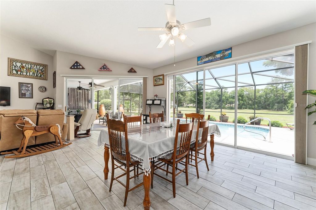 THIS SPECTACULAR 3/2/3 POOL HOME HAS PRIVACY IN THE BACK WITH THE ADDED BONUS OF AN INCLUDED ADJACENT VACANT LOT! ***FULLY PAID-OFF ELECTRIC SOLAR PANELS will help keep your monthly utility costs around an average of $100/month!***. Where comfort, nature, and community charm come together, this spacious home is located in the sought-after Rainbow Springs Country Club Estates and has DIRECT ACCESS TO THE RAINBOW RIVER - just another bonus to this peaceful retreat in Dunnellon, FL. Out front, enjoy a friendly neighborhood ideal for walking, biking, and dog-friendly strolls. Out back, your private oasis opens to a large, county-maintained greenbelt framed by mature trees. Watch deer, wild turkey, and even the occasional bald eagle from your own backyard. Inside, you will see why this split floor plan was the community's top-selling model. The home features an expansive open-concept layout that seamlessly connects the kitchen, dining, and living areas, all bathed in natural light from six oversized 8-foot sliding glass doors. Step outside to the screened lanai and enjoy your private in-ground pool for year-round enjoyment. The spacious primary suite includes dual walk-in closets, a luxurious bath with double vanities, a garden tub, a walk-in shower, and a private water closet. The second bath conveniently opens to the pool area for easy access. Residents of this vibrant community enjoy exclusive access to a private Rainbow River park with a sandy beach, kayak launch, picnic areas, and restrooms. The community center offers a pool, tennis courts, a fitness center, billiards, and scenic walking paths. Located just minutes from grocery stores, restaurants, and Walmart, and with easy access to Crystal River, the Gulf Coast, the World Equestrian Center, and the Orlando and Tampa-area attractions, this home truly offers the best of all worlds. Don't miss your chance to live in a nature lover's paradise with modern conveniences at your doorstep.