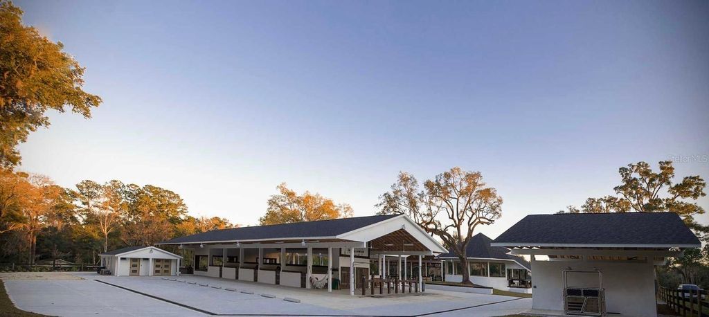 Discover Sociagro Equestrian Center, a luxury equestrian estate and event facility located just 25 minutes from the World Equestrian Center in Ocala, Florida. This extraordinary property spans 14.71 acres of fully functional equestrian land, divided into 10 fenced paddocks with automatic water access, double perimeter fencing, and two gated entrances for privacy and ease of access. Internal driveways allow you to tour the property comfortably by vehicle. Designed for both training and entertaining, this turnkey equestrian facility offers a barn with 10 oversized 16x16 stalls, a fully furnished 360° glass office with panoramic views, custom-built desks and dining for 20, and two air-conditioned restrooms separated for men and women. The property features a climate-controlled tack room, air-conditioned kitchen with quartz buffet counter, Alfresco 56" barbecue, ceramic pizza oven, three outdoor refrigerators (wine + beverage), and main kitchen refrigerator "” ideal for gatherings and equestrian events. Additional amenities include a climate-controlled storage area, three foam-insulated storages, and a stainless-steel veterinary chute built to international standards. The covered arena features an under-roof spectator area with seating and lounge space, while the round pen includes an elevated viewing balcony and covered saddling area. Perfect for clinics, private events, or professional equestrian activities. This property also includes a well, septic tank, and a retention pond for efficient water management and drainage. Dedicated parking areas for guests and a concrete trailer parking zone complete the setup. Every structure was built with precision, prioritizing comfort, functionality, and sophistication. With its strategic location near the World Equestrian Center, this estate is ideal for trainers, breeders, or investors seeking a luxury equestrian and event center in the heart of Horse Capital of the World - Ocala, Florida.