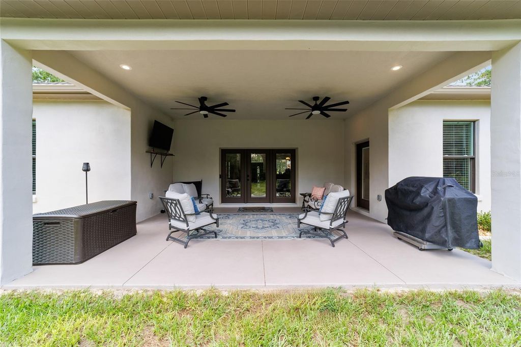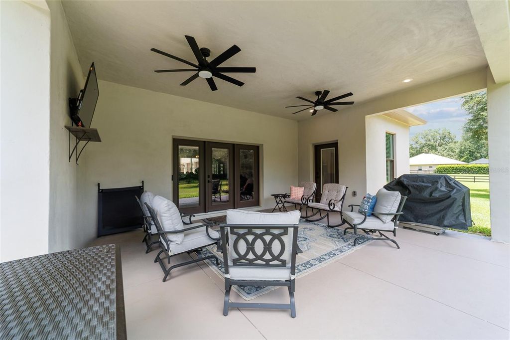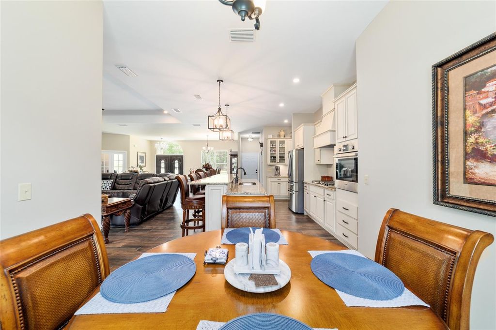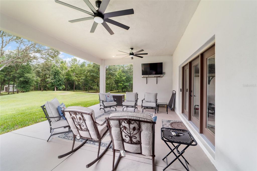 Welcome to this beautifully designed 2022 custom home, nestled on 7.33 private acres in The Village at Hidden Lakes, a gated equestrian community where deer and turkey often wander through the yard and peaceful mornings start with nature right outside your window. This is one of the largest lots in the neighborhood, offering the perfect combination of tranquility, privacy, and potential for your dream farm or country retreat. As you arrive, an automatic iron gate opens to a winding asphalt driveway, leading you beneath scattered oaks and past lush, green grass to the front entrance. The home is thoughtfully set back on the property, framed by mature trees and beautifully landscaped with river stone accents. Whether you plan to bring horses or simply want room to breathe, this property delivers the lifestyle you've been dreaming of. Step inside and you'll immediately appreciate the open, inviting floor plan designed for both comfortable living and effortless entertaining. With 2,597 square feet of living space, this home feels bright and airy, thanks to expansive Pella windows that fill the home with natural light. The living room features wood-look tile throughout, and a stunning floor-to-ceiling stacked stone gas fireplace with a remote thermostat, elevated hearth, and custom mantle"”perfect for cozy evenings at home. The main living space also includes a dedicated area for your dining room table, allowing for seamless gatherings and family meals. The chef's kitchen is a standout, complete with soft-close custom cabinetry, granite countertops, a gas cooktop, stainless steel appliances, and a coffee station with extra cabinetry and counter space. An oversized kitchen bar is perfect for casual breakfasts, while a separate dining nook overlooks the backyard, creating the perfect spot for morning coffee with a view. A private office with French doors is located just inside the home near the main living area, offering a quiet space to work from home without sacrificing convenience or flow. The split floor plan provides privacy for family and guests. The master suite is tucked away on one side of the home, featuring double closets and a spa-style bath with dual vanities, a deep modern soaking tub, and a walk-in tiled shower. On the opposite side, two guest bedrooms share a beautifully finished bath. An additional half bath and a well-appointed laundry room with cabinet and counter space are conveniently located near the 1,006 sq ft 3-car insulated garage, complete with insulated doors for comfort and efficiency. All interior doors are 36" wide, making the home handicap accessible, and 10' ceilings with 11' tray accents add a sense of space and light throughout. French doors lead from the living room to the covered back porch, where you'll find a ceiling fan and TV hookup"”the perfect place to unwind in the evenings while watching the local wildlife. From here, step into the expansive backyard where you can easily add barns or pastures to create your own horse farm, or simply enjoy the serene, park-like setting with scattered oaks and lush grass. A storage shed is included for yard equipment, and a list of select furniture is available for purchase with the home. Conveniently located just 20 miles to I-75, 19 miles to the World Equestrian Center, 9 miles to HITS, 7 miles to Williston, 26 miles to Gainesville, and 20 miles to Ocala, this is the perfect blend of luxury living, rural charm, and modern comfort.