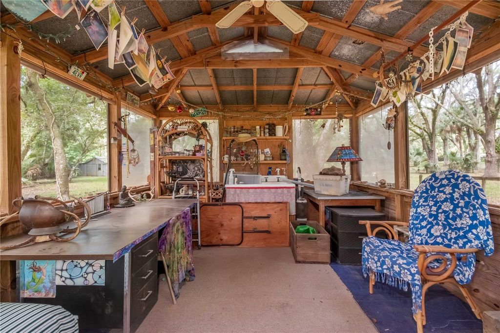Tucked between the charm of Ocala and the energy of Gainesville, this 4.5-acre retreat in Citra is the perfect canvas for hobby farmers, homesteaders, or anyone seeking a slower pace in a private country setting. Tucked down a quiet, unpaved lane, this custom-built 2-bedroom, 2-bath home offers nearly 2,000 square feet of thoughtfully designed living space. Light and bright, the home invites the outdoors in through expansive windows that frame sweeping views of the surrounding countryside. The living area serves as a true focal point, where picture windows span two walls, highlighting the landscape while warm wooden tray ceilings add depth and character. A bonus of built-in storage enhances the room's functionality. For those who enjoy cooking, the kitchen is well-equipped with plenty of cabinet storage, tile countertops, stainless steel appliances including a gas range, and a center island. Outdoors is where the property truly shines! Fenced and zoned A-1, the farm is well-suited for a multitude of uses including small livestock or equestrian use. A 2-stall barn is established with plenty of space for an additional 2 or more stalls. An additional shed, workshop, green house, and a cabana offer versatile utility with ample opportunity for further customization. Gentle shade can be found throughout the property from mature trees, including stunning oaks and some fruit trees. With a 2-car garage and an additional carport, there's room for equipment, trailers, or visitors. Whether you're dreaming of farm-fresh mornings, space to grow, or just a quiet country backdrop with proximity to major cities, this property blends lifestyle and land with plenty of potential to make it your own.