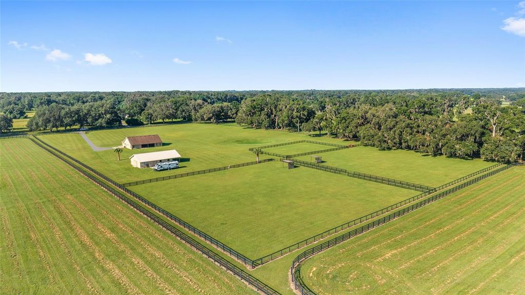 Under contract-accepting backup offers. Welcome to this exceptional one-owner horse farm nestled in NW Marion County, conveniently located 30 minutes or less to WEC, Majestic Oaks and the The Jockey Club. Perfectly suited for any discipline, this property offers a thoughtfully designed layout featuring three lush paddocks and a versatile 4-stall center aisle barn - easily convertible to six stalls or even a charming small apartment. The home has been meticulously maintained and boasts a custom floor plan with upscale touches, including upgraded cabinets, self-closing drawers, and under-cabinets lighting. Spacious bedrooms provide ample storage, while the primary suite and bathroom offer luxurious comfort. Cathedral ceilings,formal dining room, bull nose corners, spacious screened porch... this home is like new! The finished,painted side-entry garage adds convenience and functionality. The farm includes 10 lush acres , 3 paddocks with water and run-ins, and a dedicated riding arena. The barn is plumbed for auto waterers in each stall and features a bathroom, wash rack (hot and cold water), tack and feed rooms, plus a workshop area and storage for farm small farm equipment. Enjoy sunsets from the 12 x 36 porch facing west on the front of the center aisle barn, what a treat! Not to forget, the 2 full, 50 amp RV hook-ups located conveniently to the barn. Safety and security are paramount with lighting rods on the home and barn and a private electric gate entrance ensures privacy. Surrounded by some of the most beautiful horse farms in the area, this property offers a rare opportunity to own a turnkey equestrian estate. Call today to schedule your private viewing!
