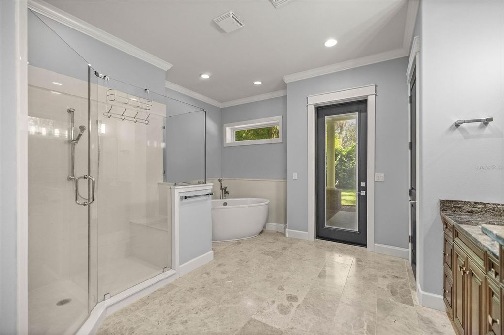 Magnificent 2 story custom home in the heart of Ocala with NO HOA! Located just a block outside of the Historic District and just minutes from hospitals and shopping, this 2015 home is truly a statement. The grand, 2 story foyer with a custom wood stair case, sets the tone for the elegance and functionality this home offers. The stunning bricked arches lead into the Chef's kitchen with Cambria Quartz countertops, Thermador appliances, maple cabinets and tons of counter space and storage. The downstairs Owner's Suite Wing is nothing short of breathtaking. The vast closest has plenty of space with CUSTOM CLOSET SYSTEMS and an island with Quartz counters. The Owner's bedroom and bathroom and beautifully laid out and are closed off from the rest of the home. One of the most impressive of the many features this home has is the nearly 1,000 square foot, 2 story bonus room. Complete with a 2nd story balcony overlooking the room, a massive 2 sided fireplace and large custom bar, it is ideal for large gatherings. Upstairs, there is a secondary Owner's Suite with shower and tub as well as a large walk-in closet with custom closets. The other 2 bedrooms share a Jack and Jill bath. One of the bedrooms could also be an upstairs bonus room. There is an oversized 2 car garage and an additional garage for larger vehicle storage. The home has 2 new gas tankless hot water heaters, 2 newer GENERAC generators, one for upstairs and one for downstairs, a whole house water filtration system, Andersen Windows, alarm system, SPRAY FOAM insulation and the list keeps going. A truly one of a kind in a truly one of a kind area!