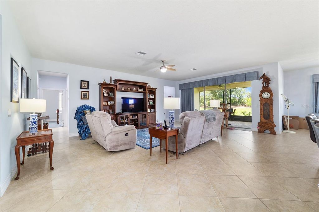 Don't miss your opportunity to claim this spacious Pinnacle model, ideally positioned on a premium lot overlooking a peaceful, tree-lined greenbelt in the gated 55+ Stone Creek Golf Course Community. This home offers the perfect blend of comfort, functionality, and an active adult lifestyle"”all in a setting that feels like a year-round getaway. From the moment you arrive, the curb appeal is undeniable"”mature landscaping, decorative concrete curbing, stacked stone accents, and a paver-lined driveway create a welcoming first impression. Inside, this spacious home offers something for everyone, including a versatile bonus den or office and an extended 3-car garage with ample space for a golf cart, workshop, or hobby area. Step into a bright and inviting space where the open layout begins with a welcoming foyer and flows into a beautifully lit interior featuring high ceilings, subtle recessed lighting, and tile flooring in calming neutral tones set on the diagonal. The Chef's kitchen is thoughtfully designed with everyday living in mind, featuring an oversized island that's great for casual meals or catching up with friends. Granite countertops, a tiled backsplash, stainless steel built-in appliances, and a roomy walk-in pantry make it as practical as it is welcoming. The kitchen connects seamlessly to the spacious gathering room, offering an easy flow for everyday living and entertaining. Panoramic recessed sliders open wide to a large screened-in patio"”an ideal spot to relax, host a gathering with friends, or simply enjoy the quiet beauty of the greenbelt views. The Owner's suite is a private retreat, offering a large walk-in closet and an elegant en suite bath with a granite-topped double vanity and a glass-enclosed walk-in shower enhanced by a transom window for natural light. Both guest bedrooms include walk-in closets, and the front guest suite features a charming bay window and a private bath, providing comfort and privacy for visiting friends and family. This home is more than just a place to live"”it's a gateway to the vibrant lifestyle that Stone Creek is known for. Enjoy access to a championship golf course, resort-style pools, a full-service health spa, social clubs, entertainment, excursions, and so much more.
