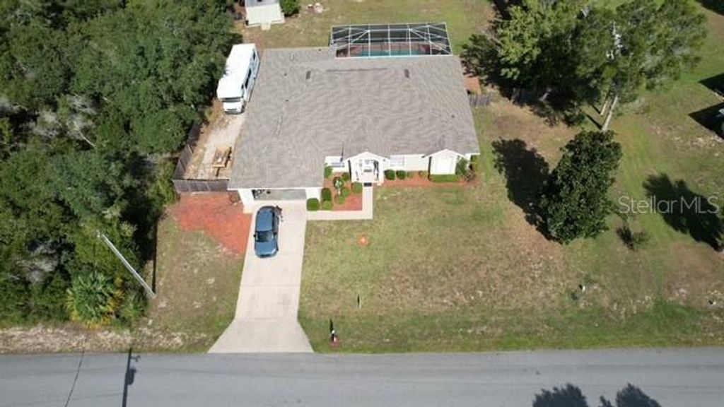 Impeccable! Describes this loved and well maintained 4 Bedrooms, Plus Flex room/Den, 3 full Baths home with a roomy (23' X 25') Garage & a Shed (14' W X 12' L) Situated on a .45 of an acre home site. Open floor plan with tray ceilings throughout. Formal Dining Room. The Kitchen boasts a walk in Pantry, plenty of cabinets, Granite counter tops, unique tiled backsplash, newer Stainless Steel appliances featuring a cooks delight double oven and overlooks the additional spacious everyday, casual eating area. The Great Room opens to the expansive tiled and screened Lanai w/ access to/from the 3rd full Bath. Birdcage screened sparkling in ground salt water Pool overlooks privacy fenced and treed backyard. The Master/Main Suite has door access to/from the Lanai, Spa and Pool. Master Bath has double sink vanities, a corner soaking Tub, a step in tiled Shower and a large closet with built ins. On the opposite side of the home is the hallway with 2 storage closets and the 2nd, 3rd and 4th Bedrooms sharing 2 nicely appointed full Baths. The 3rd Bath has a Walk In Tub and the hall door to the lanai, Spa and Pool. The home has been upgraded and updated over the years and includes; Roof replaced Apr. 2025, Water Heater Jan. 2024, HVAC July 2018. A Home Warranty also conveys with the home. Located in popular SW Ocala neighborhood, close to all your needs and parent popular K-12 schools. Your Oasis awaits!
