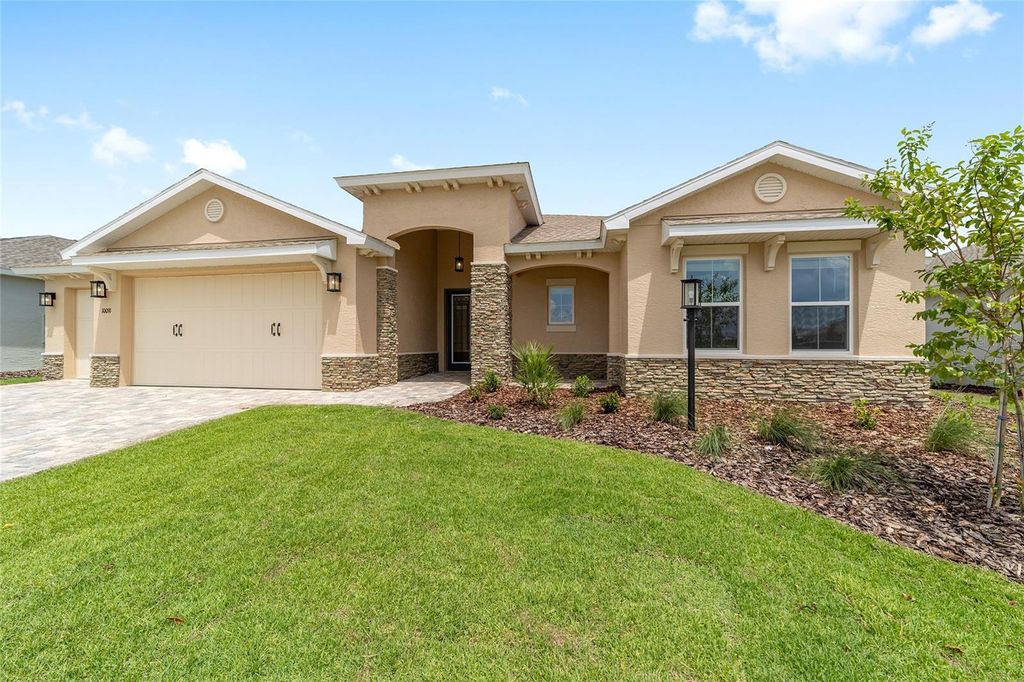 Live in luxury and style in this brand-new Wellington model, featuring an open concept layout, gourmet kitchen, and seamless indoor-outdoor living in the Balfour neighborhood of On Top of the World. This 3-bedroom, 3-bathroom home offers tile flooring and tray ceilings throughout, creating a bright and elegant living space. French entry doors add sophistication, while sliding doors in the living area lead to a screened lanai, perfect for entertaining or relaxing outdoors. The gourmet kitchen is equipped with a large island, quartz countertops, tiled backsplash, under-cabinet lighting, staggered cabinets with crown molding, a built-in oven and microwave, and a 5-burner cooktop. A separate dining area with elegant lighting provides the perfect space for family meals or entertaining guests. The master suite is a true retreat, featuring a tray ceiling, spacious walk-in closet, and a luxurious en suite with dual sinks and a zero-entry tiled shower with a built-in bench. Completing this home is a 3-car garage, offering ample space for vehicles and storage. Located in the vibrant On Top of the World community, residents enjoy resort-style amenities and an active, engaging lifestyle "” all in a brand-new, move-in-ready home. Call for your private showing today!