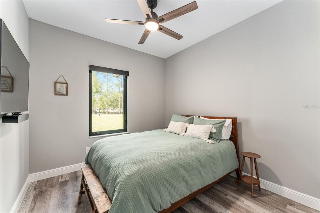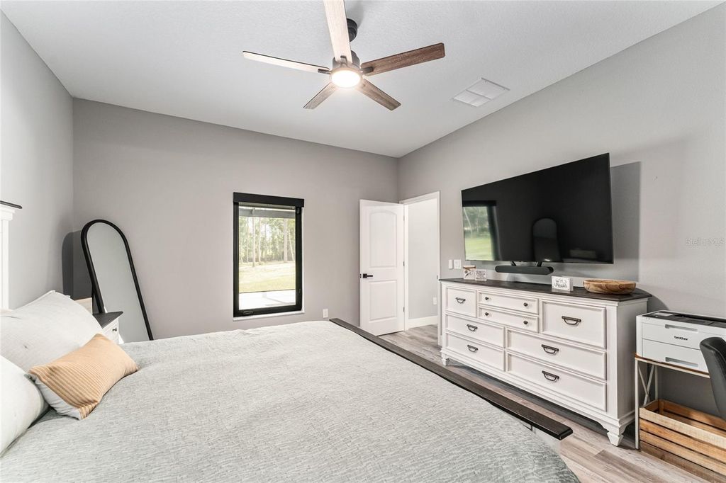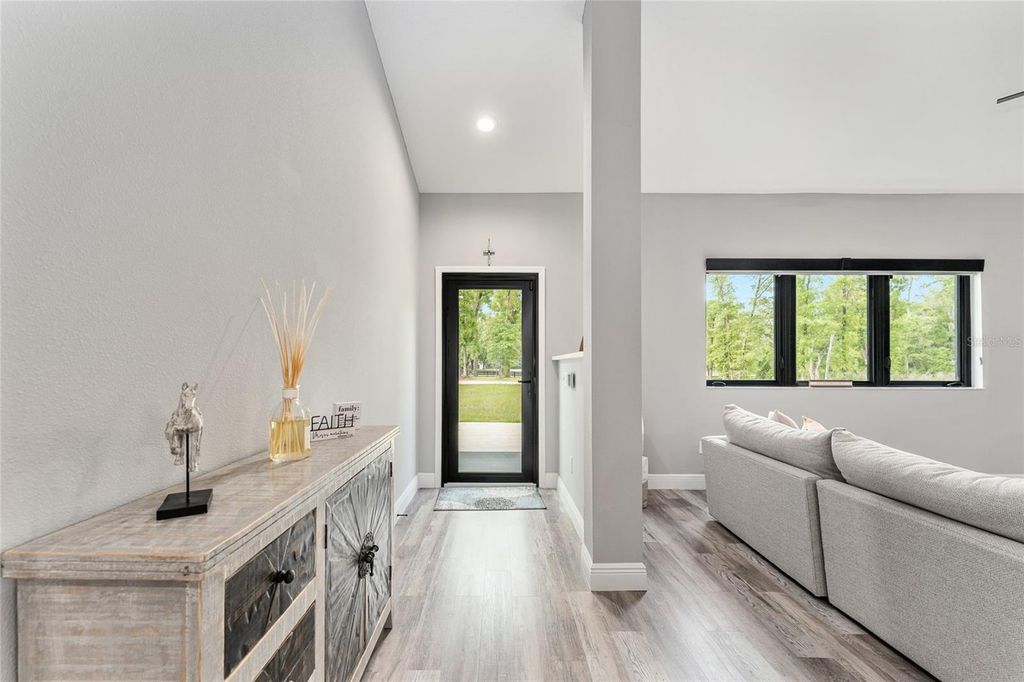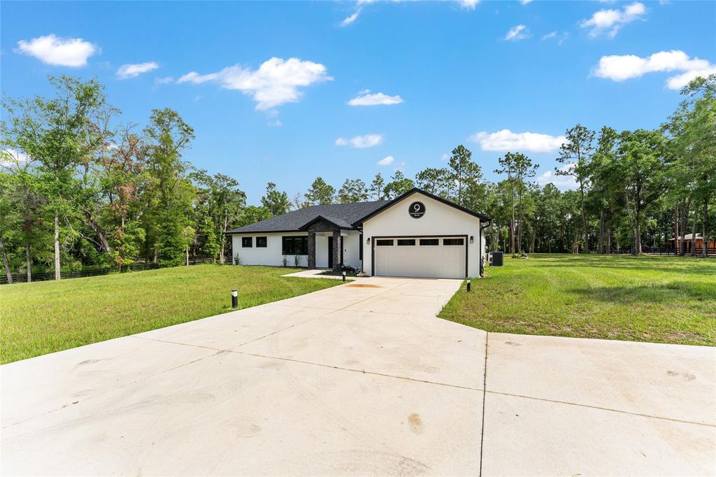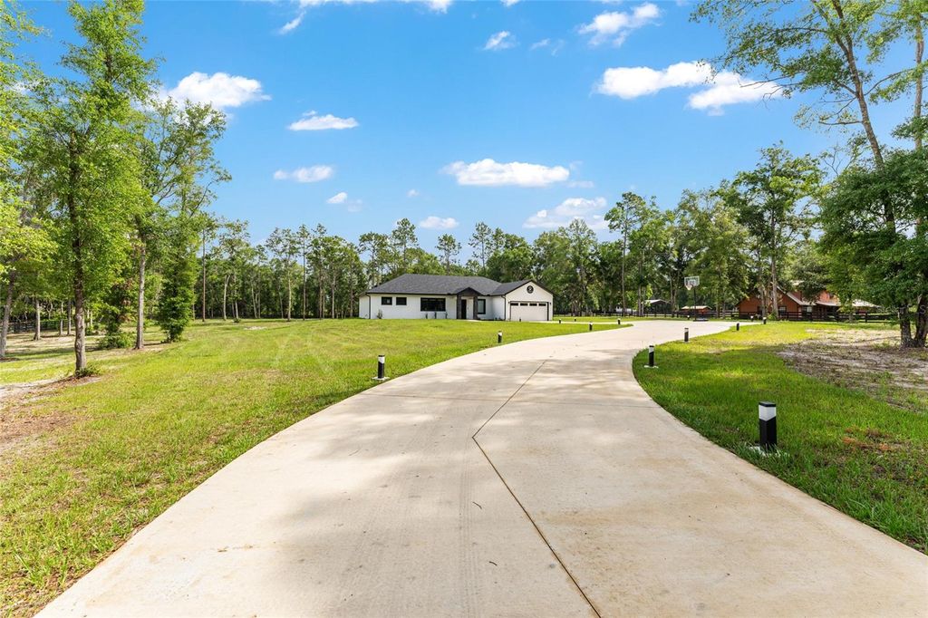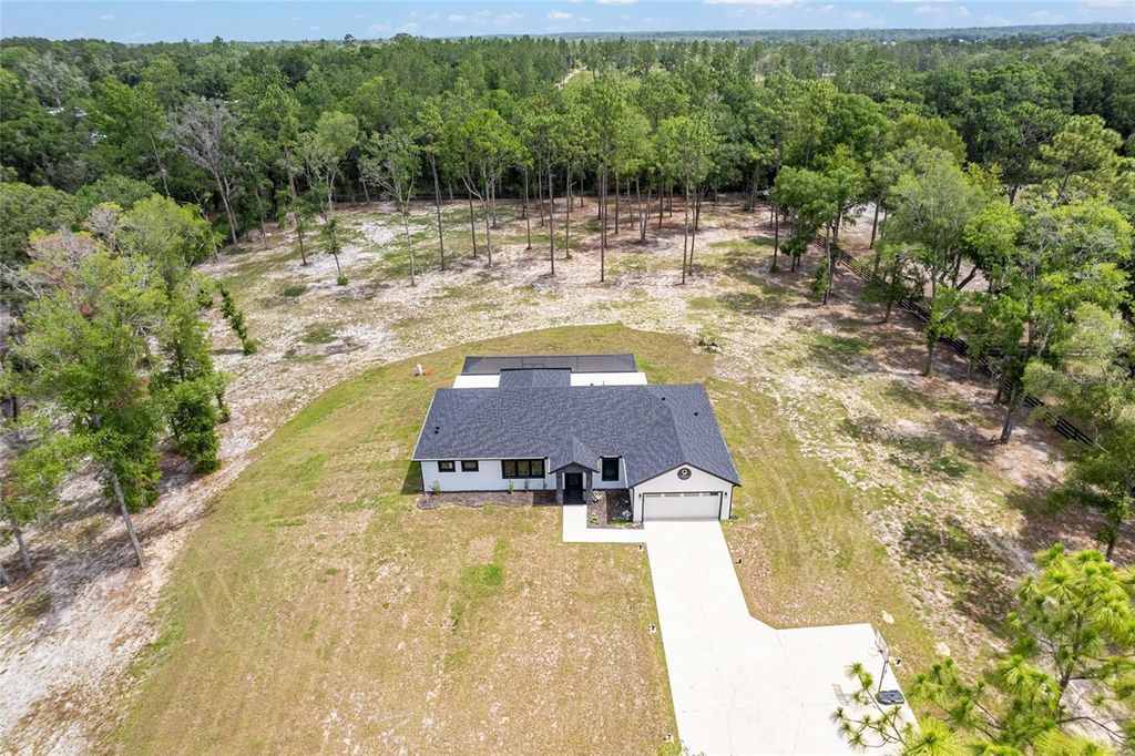 Better than new, this impeccably maintained 4-bedroom, 2-bath home sits on 4.3 partially cleared acres just 7 miles from the World Equestrian Center. Enjoy peace and privacy with perimeter 4 board/wire fencing, a new electronic gate, paved driveway and security system. The spacious interior features an open-concept living, dining, and kitchen area with French doors leading to a large screened patio"”perfect for entertaining. The kitchen boasts quartz countertops, soft-close cabinetry, a wine cooler, and an upgraded hood vent. The primary suite includes dual walk-in closets with custom shelving and a luxurious zero-entry shower and double vanity. Guest rooms also offer custom closets, and the hall bath features LED lighting and a tiled shower. Additional upgrades include a high-efficiency Rheem heat pump water heater, spray foam attic insulation, upgraded windows with window treatments, and a whisper-quiet garage door opener with camera and remote access. This home blends modern comfort with country charm"”ready for you, your horses and other furry friends.