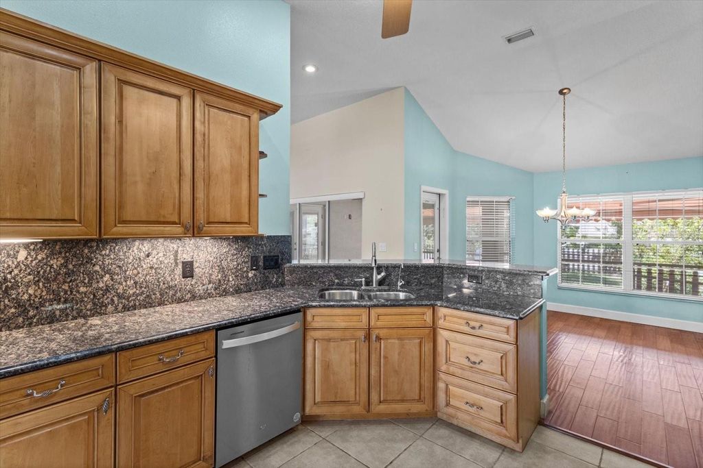 NEVER FLOODED! Custom-built in 2006, this beautiful residence is located in Bluewater Estates, just minutes from Homosassa's National Wildlife Park and the main springs of the Homosassa River. This 3 bedroom, 3 bath home with den offers over 2,100 square feet of living space and more than 2,900 square feet under roof. The open floor plan features cathedral ceilings, Shaw hardwood floors, and ceramic tile throughout with lush carpeting in the bedrooms. The spacious kitchen is designed for both cooking and entertaining with granite countertops, stainless steel appliances, and custom wood cabinetry. The owner's suite includes dual walk-in closets, dual sinks, a jetted garden tub, separate shower, and a mini-split A/C for added comfort. A whole-house generator powered by an owned propane tank provides peace of mind, while the newer metal roof ( 2022) adds lasting value. Additional highlights include a circular brick paver driveway, rear-entry garage, sprinkler system, alarm system, in-wall pest control, and decorative fenced dog runs both front and rear. With its prime location, thoughtful upgrades, and quality finishes, this home is a pleasure to show