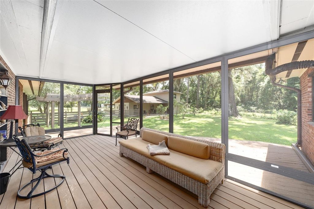 If you're looking for privacy, tranquil country living with a touch of elegance, and room to roam this stunning 6.85-acre horse-zoned farm is the one for you! Offering 2,358 sq ft of updated living space, the home features 3 oversized bedrooms, 2.5 baths, and an open, light-filled floor plan, with large windows throughout. The chef's kitchen is designed for entertaining with custom cabinetry, a spacious island, granite countertops, pantry, stainless steel appliances, with a five-burner gas-top range. The upgraded cabinetry and stone counters carry through to all bathrooms. Durable porcelain tile flows throughout the home, adding both style and function. Escape to your serene spacious primary suite that overlooks the private backyard and features a large walk-in closet, ample space for a sitting area, and a lovely master bath. The two other roomy bedrooms are separated by a second bright and airy full bathroom. Attention to detail throughout the interior with custom trim, ceder closet shelving, and solid doors for enhanced privacy. Step outside to a screened-in back porch that overlooks the most majestic live oak tree centered in the fully fenced backyard, perfect for pets and private relaxation. Connect with nature over your morning coffee or early evening refreshment in this tranquil setting with your very own enchanted forest. A sanctuary with gentle breezes, dusk and dawn light beams shimmering through the trees and a vast array of birds and other wildlife. The cardinals, owls, hawks, humming birds, and butterflies await... Additional amenities include a 908 sq ft covered carport and a 1,380 sq ft detached garage with one bay and an unfinished two-story apartment or office, offering endless possibilities, including potential income producing. The property also includes a 1.9-acre pasture complete with a versatile cover for horses or livestock. Major updates completed in 2016 provide peace of mind, with all three buildings reroofed, a 5-ton HVAC installed, and electrical and plumbing upgrades. A new drain field installed in 2021, a 120-gallon well tank replaced in 2019, and a 50-gallon hot water heater replaced in 2024. An upgraded water softener and reverse osmosis system are also included. Conveniently located just minutes from downtown and shopping, yet perfectly tucked away with plenty of space and privacy, this farm truly offers the best of both worlds. And for the horse enthusiast, Indian Lake State Forest Equestrian Trails are located just over four miles away with its 7.8-mile loop-trail for up to three hours of riding enjoyment. Schedule your private showing today"”you won't be disappointed!