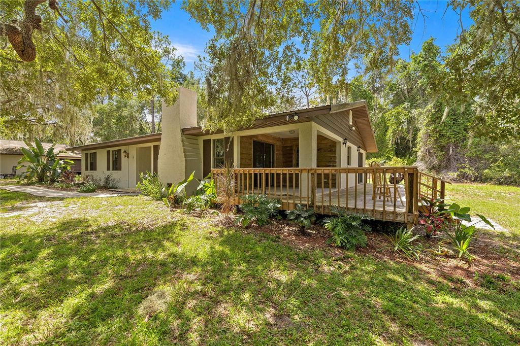 Your own slice of Florida paradise is waiting! This 8-acre lakefront oasis is tucked away in rural Florida on one of the best bass-fishing lakes in the region. Zoned A1 and unincorporated, you can bring your horses, pigs, chickens"”whatever your heart desires. Launch your johnboat, airboat, or paddle craft right from your backyard and soak in pure Florida bliss along your private stretch of lakefront. Afterward, enjoy time at your private shooting range right on the property. The recently refreshed wrap-around deck gives you sweeping 180° views of the lake"”perfect for sunrise coffee, evening barbecues, or simply counting your blessings. An XL detached garage with second-floor storage offers plenty of room for toys, tools, and all the extras. You'll also have easy access to nearby trails for four-wheelers, side-by-sides, ATVs, and more. Inside, the spacious primary suite features private porch access overlooking the lake. Two additional bedrooms are set on the opposite side of the home in a desirable split floor plan. The large, open living area is filled with natural light and gorgeous lake views through big windows. Gather around the stone fireplace as golden hour settles over the water, or step outside through the sliding glass doors to the wrap-around deck. A converted garage bonus room with an oversized closet adds flexibility"”ideal as a game room, man cave, or guest suite. The indoor laundry room (washer and dryer included) and durable flooring"”ceramic tile throughout the main living area and luxury wood-look tile in the bonus room"”add both comfort and convenience. The kitchen and bathrooms all feature granite countertops, while the primary ensuite includes a luxurious walk-in stone shower, private water closet, and spacious closet. Your dream home... A wedding venue.... A vacation spot... The possibilities are endless here. This piece of natural Florida won't last long"”schedule your showing today! Part of property classified as PEM1F. Buyers to verify all information.