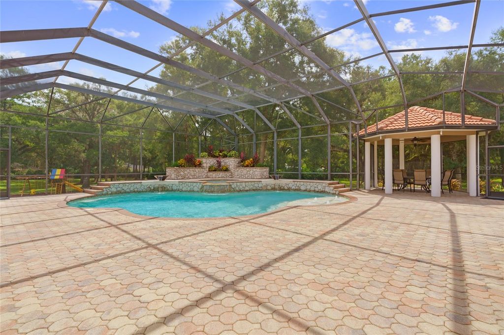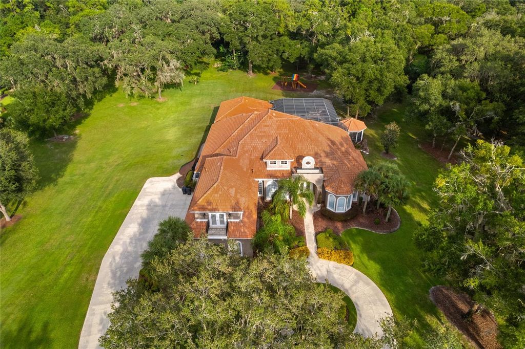 One or more photo(s) has been virtually staged. Discover this exceptional 5 bedroom, 4.5 bath, 4-car garage custom pool home located in the gated equestrian community of Country Club Farms. Nestled on just under 5 acres at the end of a cul-de-sac, the property is shaded by majestic granddaddy oaks and offers ample space to build a barn with all the equestrian amenities you desire. The interior boasts an open-concept floor plan with 14 ft ceilings in the bedrooms and 16 ft in the living area, ideal for family gatherings and entertaining, with a spacious eat-in kitchen, formal dining area, and a striking fireplace as the centerpiece. Designed for versatility, the split floor plan provides multiple living arrangements, perfect for multi-generational living. Three separate living areas, one with its own kitchen, feature private entrances, ensuring comfort and privacy. Additional highlights include, Whole-house generator for peace of mind, three fireplaces adding charm and warmth ,theatre room for private movie nights, multiple flex rooms ideal for offices, playrooms, or sitting areas, two Rinnai tankless water heaters with temperature control in two bathrooms, expansive screened lanai with resort-style pool, waterfalls, and lush landscaping. The under-air basement with secure entry and roll-up rear access offers excellent storage or workshop space. This property seamlessly blends elegance, functionality, and the freedom to create your dream lifestyle whether it's an equestrian property or acreage to enjoy .