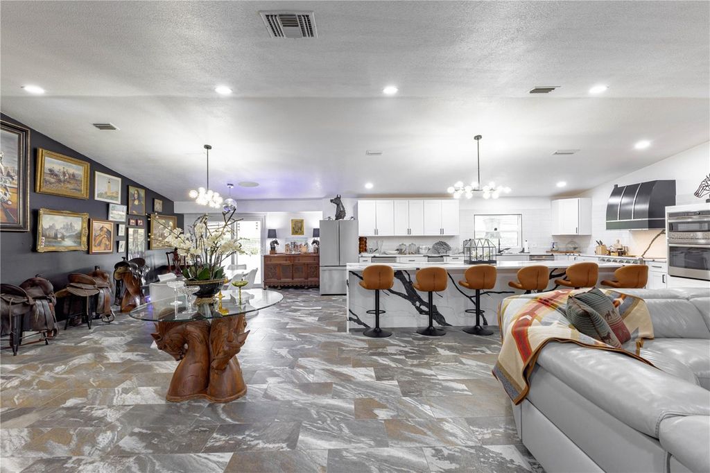 No HOA. New roof 2023. Stunning Home with Gated Entry, Circle Drive, and Majestic Live Oak Tree in Turning Hawk. From the moment you enter through the gated entry, this 4-bedroom, 2 1/2-bathroom home offers a sense of peace, privacy, and grandeur. The circle drive with the live oak tree, with its sprawling branches and natural beauty, stands as a central feature in the front yard, adding charm and character to the property. It's a serene timeless beauty that enhances the home's curb appeal. This property blends both luxury and practicality, creating a welcoming and secure environment. It's a truly unique home with the perfect balance of natural beauty and modern convenience. Step inside this renovated gem, where every inch of this home has been thoughtfully updated to offer the perfect blend of style, comfort, and functionality. This home has undergone a complete transformation, making it feel like new with high-end finishes, state-of-the-art appliances, and luxurious touches throughout. Remodeled kitchen featuring brand new high-end stainless steel appliances, new cabinetry, and over-sized island with dining bar and gorgeous quartz countertops on the new island. Both bathrooms and powder room have been completely remodeled with premium finishes. The primary bath features a stunning walk-in shower with a new vanity, and designer tile work. Surrounded by beautifully landscaped greenery, this space offers a serene escape while maintaining privacy. Covered rear patio with plenty of room for seating, outdoor dining, and with streaming moss from majestic oak trees. The swimming pool is the centerpiece of the backyard oasis, providing a private, resort-like setting. The surrounding pool deck is perfect for sunbathing, poolside parties, or simply relaxing by the water. This home is set against the backdrop of beautifully manicured horse pastures, all surrounded by charming black wood fencing that adds both rustic elegance and timeless appeal that makes Ocala special. Whether you're a horse enthusiast or someone who appreciates the peaceful country setting, these outdoor features are sure to captivate. Classic wood fencing beautifully encloses the property, adding a touch of classic charm and privacy. The sleek, deep black finish contrasts beautifully with the lush greenery of the pastures, giving the property a refined yet rustic feel. The expansive grass horse pastures are a perfect setting for equestrian pursuits, offering plenty of room for horses to graze and roam freely. The open, gently rolling land creates a peaceful retreat that complements the charming black wood fencing, enhancing both the aesthetic beauty and functionality of the property. Situated just minutes away from the world-renowned equestrian hub of Ocala, the Horse Capital of the World. Owner is a Realtor in Florida and Montana. See extensive list of remodeling in documents.
