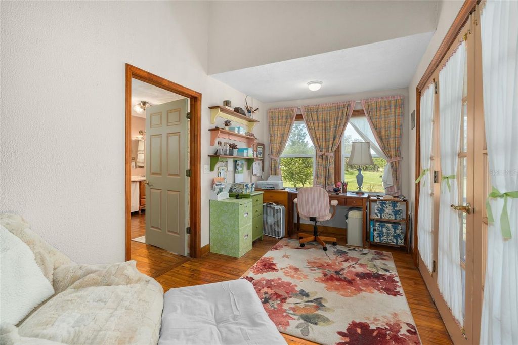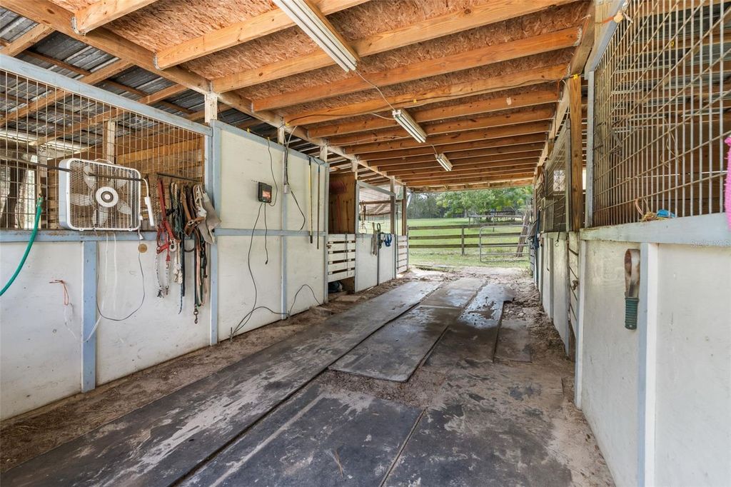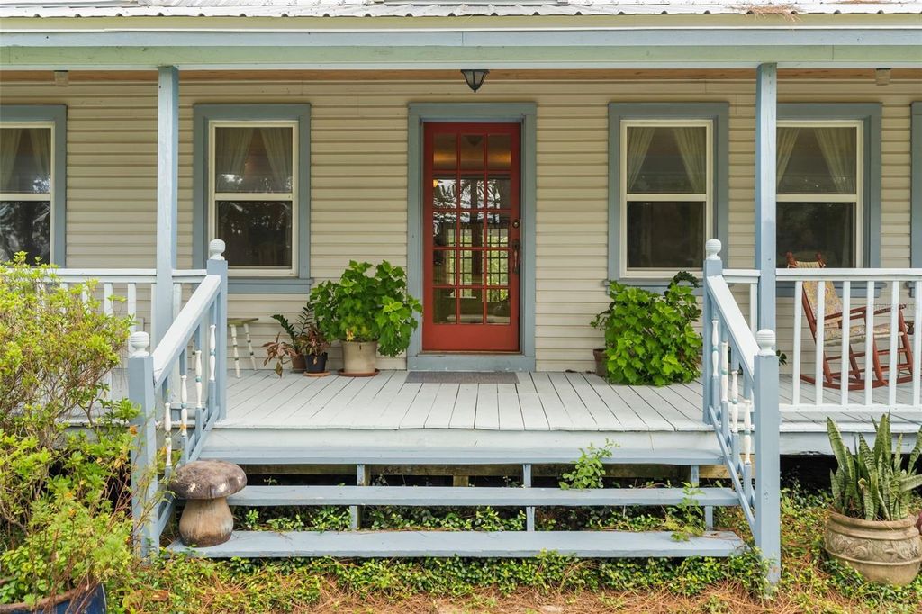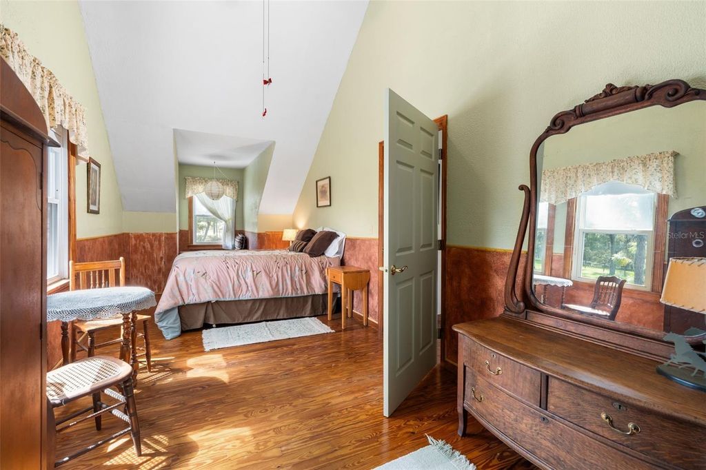 This storybook-style farmhouse offers timeless charm, peaceful acreage, and equestrian-ready amenities"”just minutes from Ocala, the Horse Capital of the World. Set on 6+ quiet acres along a scenic limestone road, the property is conveniently located near trailheads to Goethe State Forest, and just a short drive from WEC, HITS, Black Prong, and all the best of Marion County horse country. With nearly 6,000 sq ft under roof, the home includes 2,726 sq ft of heated living space plus a 1,793 sq ft walkout basement with a private entrance that can easily be finished"”perfect for a guest suite, in-law apartment, or income opportunity. The great room welcomes you with a soaring 27-foot cathedral ceiling, a gas stone fireplace, and a hand-painted tree mural that brings a whimsical touch to the space. The kitchen features solid cherry cabinetry and countertops, with both a breakfast nook and formal dining room nearby. The primary suite connects to a private bath and a dedicated office, while upstairs includes two guest rooms, a full bath, a bonus room, and hidden storage tucked under the eaves. Step outside to a nearly full wraparound porch, where sunrises and sunsets paint the sky and life naturally slows down. It's the perfect spot to sip coffee, watch the kids play, or simply breathe. The 6 stall center isle barn includes a tack room and loft area. Two RV hookups offer added flexibility for guests or seasonal visitors. A newer roof and A/C unit provide peace of mind, while the location offers unmatched access to world-class equestrian venues, trail riding, and small-town charm. Whether you're growing your family, starting your dream farm, or simply looking for room to roam, this property offers the lifestyle you've been searching for.