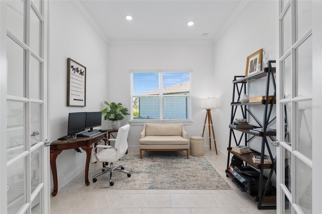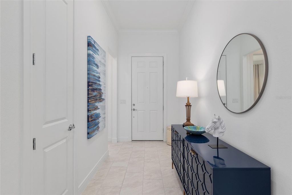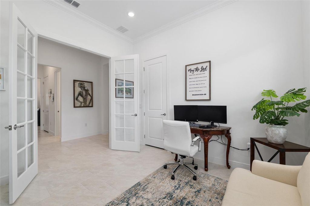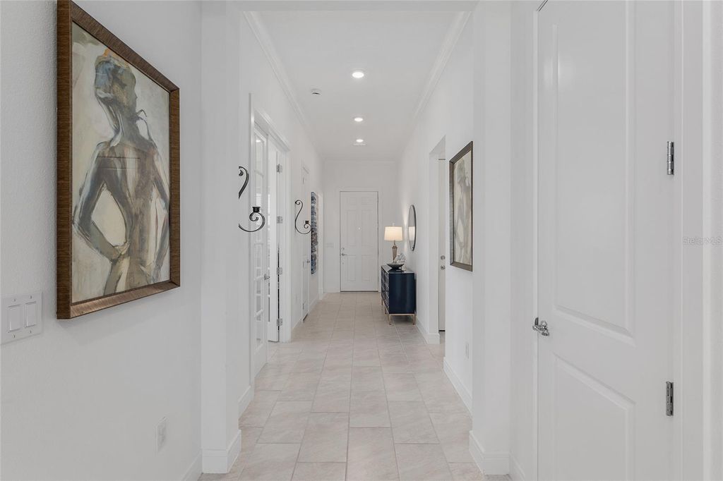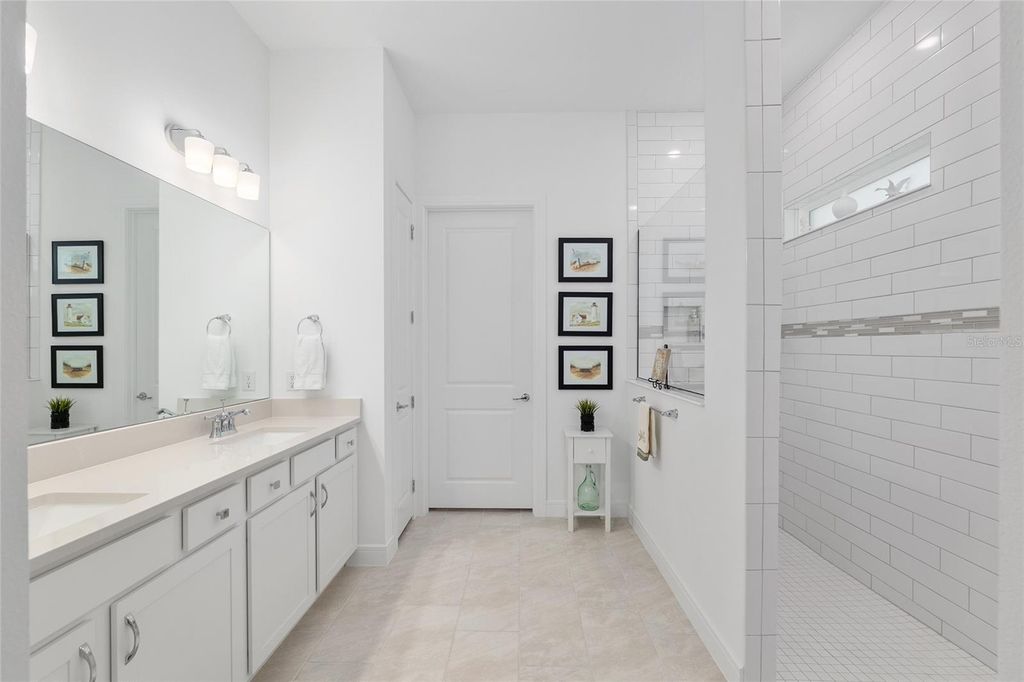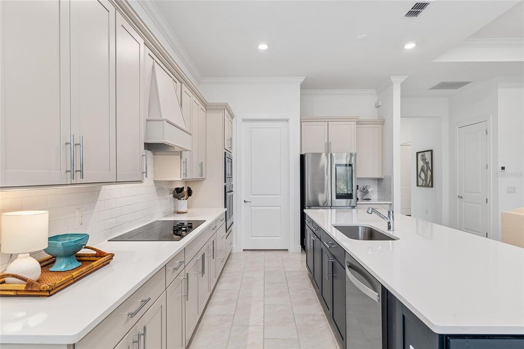 Are you in the market to purchase an impeccable move-in ready home in the desirable Stone Creek community in Ocala? Completed in June 2024, with twenty-four-hour gate house security, this exquisite and elegant Prestige model sits in a cul-de-sac. You are within walking distance of all the amenities. The home offers over $150K + in upgrades while sitting on a premium lot with dreamy sunsets and serene water views. This stunning 2-bedroom, 2.5 bath plus+ flex/bonus/3rd bedroom seamlessly connects the living, dining, and kitchen areas with porcelain tile floors throughout. The gourmet kitchen features state-of-the-art appliances, a walk-in pantry, stunning quartz countertops, upgraded 42" wood soft close cabinets, wood cabinet hood, and a large island, perfect for entertaining. The spacious dining area overlooks the lanai and offers stunning sunset views. Retreat to the primary bedroom, where tranquility awaits. The spa-like en-suite bathroom features luxurious and stylish finishes such as polished chrome fixtures, Quartz counters, floor-to-ceiling-tile in the walk-in shower, dual handheld shower heads and dual sinks. 2-separate walk-closets provide a personal and efficient space for organization and comfort. The tranquil guest bedroom features a private en-suite and picturesque bay windows. Step outside to a screened L-shaped Lanai with SUNSHADE, perfect for year-round enjoyment. Expansive lot 96x156 with sprinkler system. Property is also PRE-WIRED for a POOL/SPA and water softener. PRIME LOCATION within the community just minutes from gatehouse, golf course, clubhouse restaurant, resort-style pools, and state of the art fitness center all within close reach. Stone Creek is one of Ocala's premier 55+ active lifestyle communities offering: 18-Hole Golf Course, Pro Shop & Driving Range, Indoor & Outdoor Pools + Full Fitness Center. Spa Services & Sports Courts (16 Pickelball, 5 Tennis, Basketball, Bocce, Horseshoe, Softball). RV & Boat Storage, 2 Dog Parks, Walking/Biking/Golf Cart Trails. Onsite Restaurants, Clubs & Social Activities. Coming soon in Stone Creek: a connecting road to provide direct access to friends & family living in On Top of the World neighborhood and an additional outdoor swimming pool. NO CDD FEES! HOA covers 24/7 GATED SECURITY, 500MPS Internet, 200+ Cable Channels & Trash/Recycling. Google maps location does not show the correct street view of the property. Don't miss this opportunity to schedule your private showing and start living the Stone Creek lifestyle! Check out the VIRTUAL TOUR video on the link above!