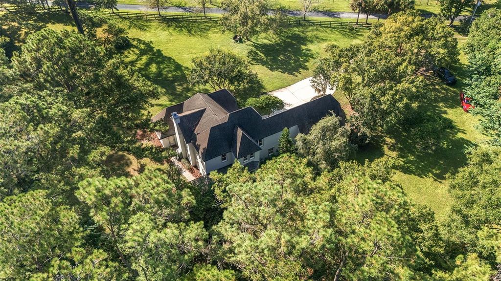 Tucked away beneath a canopy of mature trees, this grand two-story home feels like a private sanctuary at the end of a long, quiet drive. With five bedrooms, three and a half baths, and over 3,000 square feet of charm, it's a place where elegance and warmth live in harmony. Inside, sunlight pours across rich engineered hardwood floors, crown molding frames each room, and thoughtful details make the home feel both refined and inviting. The formal dining room was made for gatherings, the cozy fireplace anchors the living space, and the downstairs study offers a quiet corner for focus or reflection. The expanded primary suite is its own retreat, complete with a sunroom for morning coffee and a spacious bath for unwinding at day's end. Upstairs, a bonus room carries the air of a library or sitting room, perfect for curling up with a good book. Freshly painted, with new flooring in the kitchen and study, a new screen enclosure on the lanai, and all-new windows already on the way, the home oozes with timeless character. And beyond the walls, the land itself is something special"”zoned for horses, draped in privacy, and set far from the road, it offers space to breathe and grow. This isn't just a house. It's a home with presence, charm, and soul"”ready for its next chapter.